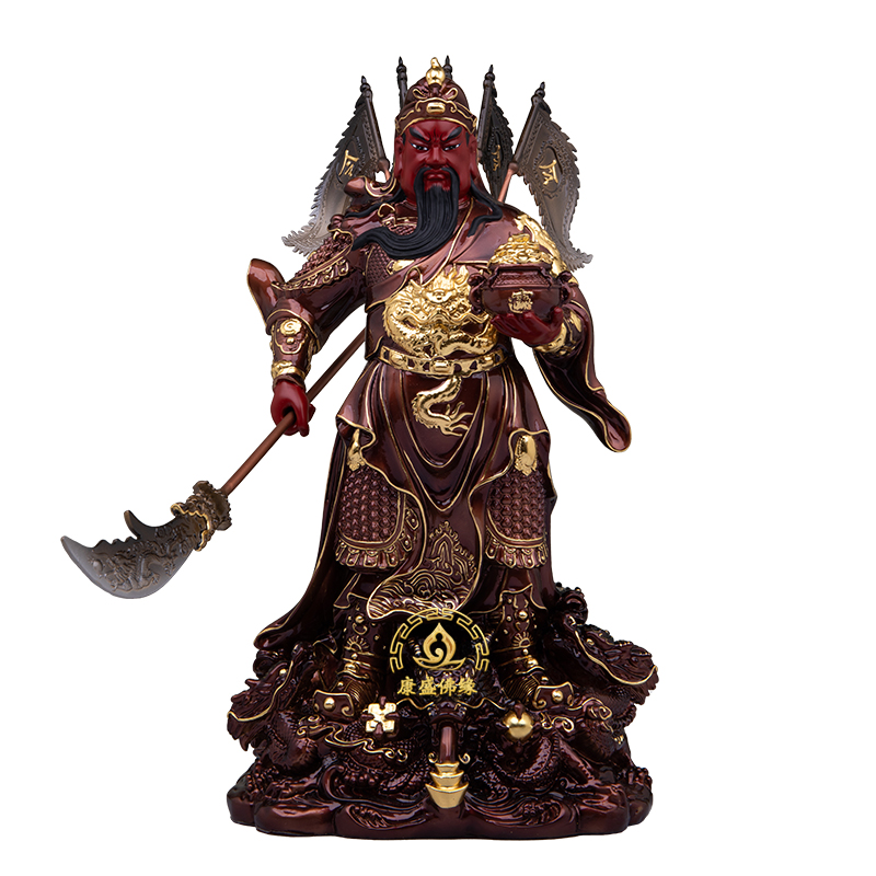关羽神像供奉紫铜提刀九龙关公立像佛堂居家招财关圣帝君铜像摆件