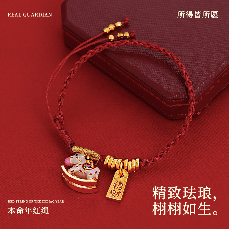 红色手工编织绳串珠珐琅彩小马手链女轻奢小众精致2025新款手饰品