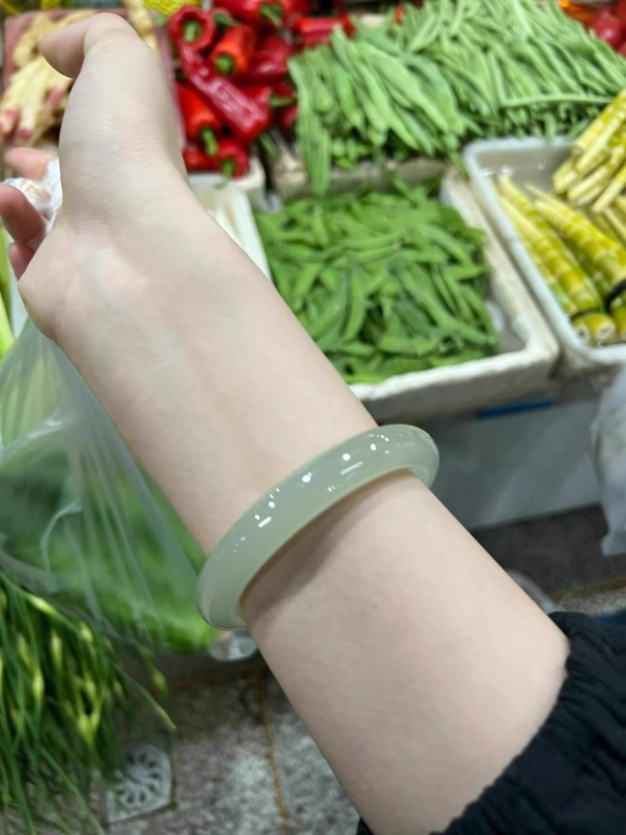 新疆和田玉青白玉平替手镯玉髓玉镯子叮当镯晴水圆条冰透生日礼物