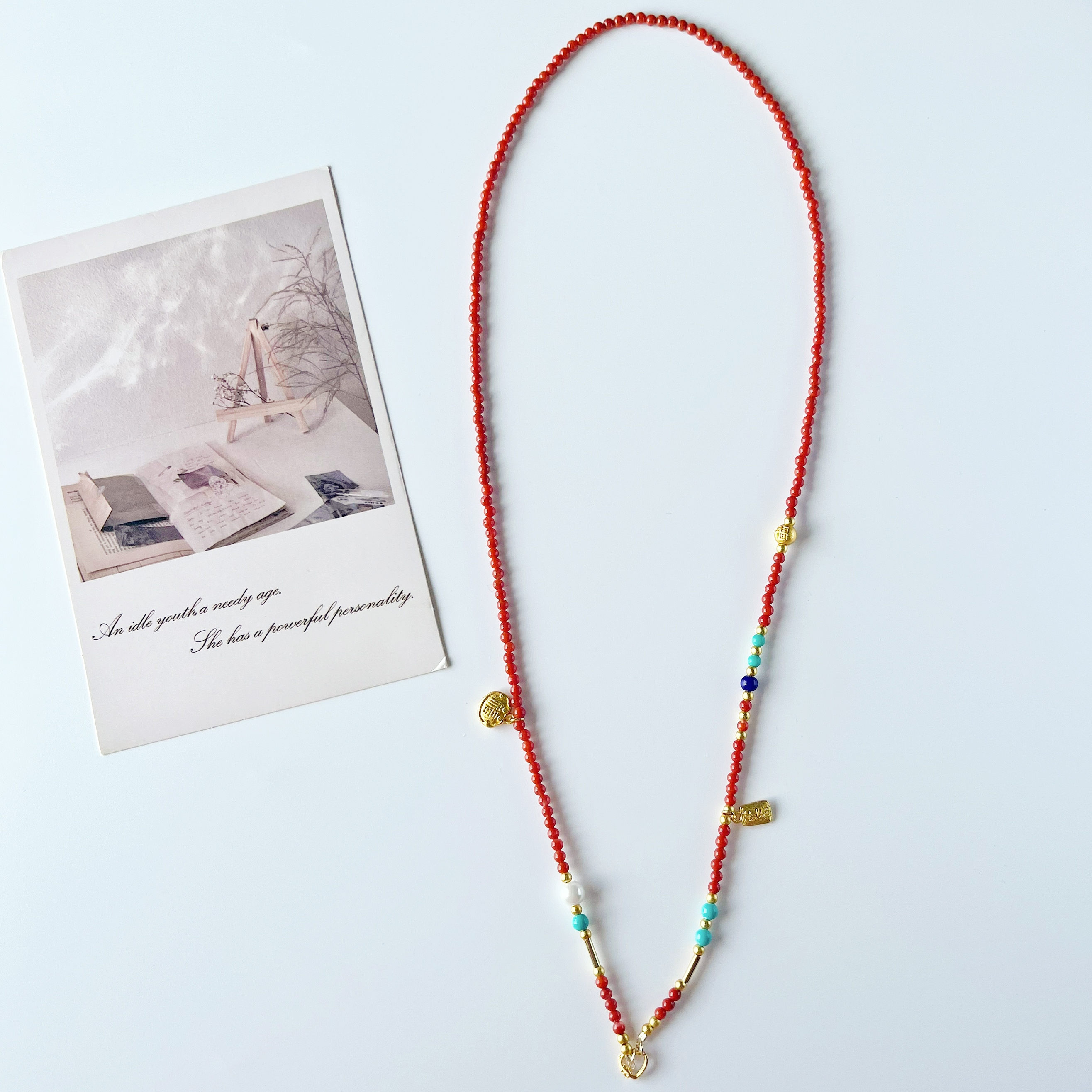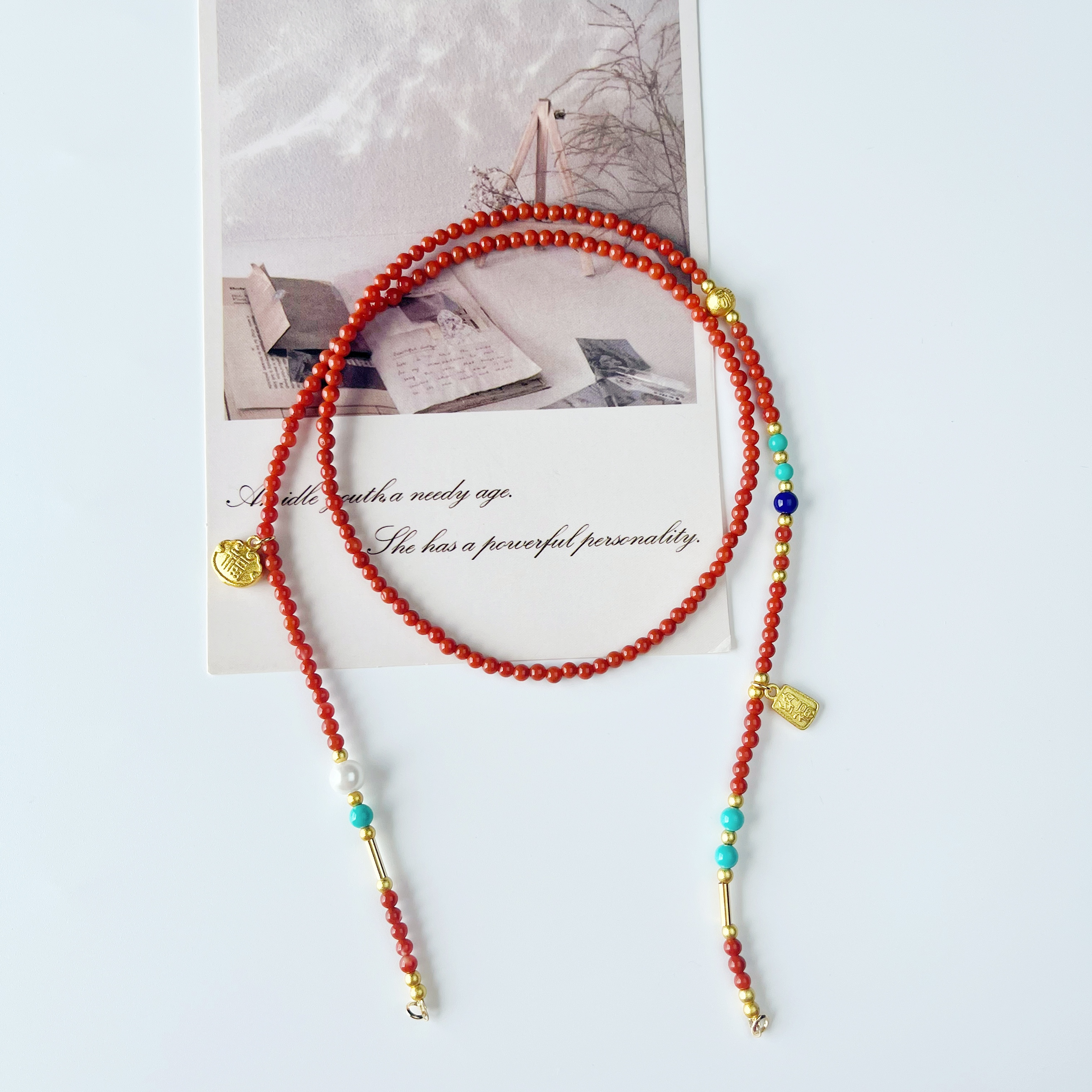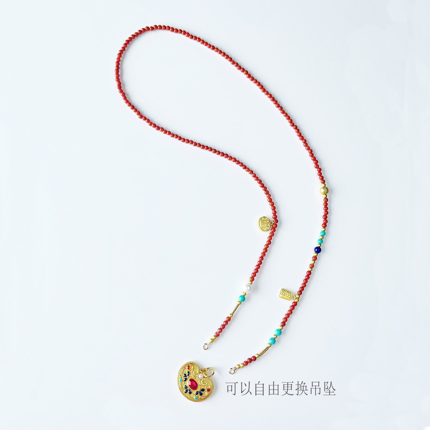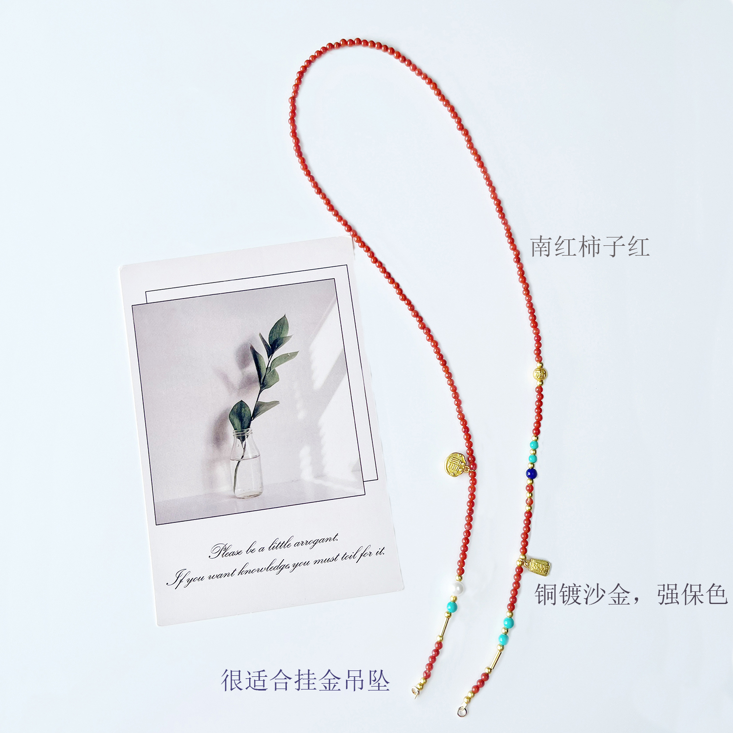 天然南红长款项链新中式转运链本命年红吊坠挂链毛衣链万能扣串珠