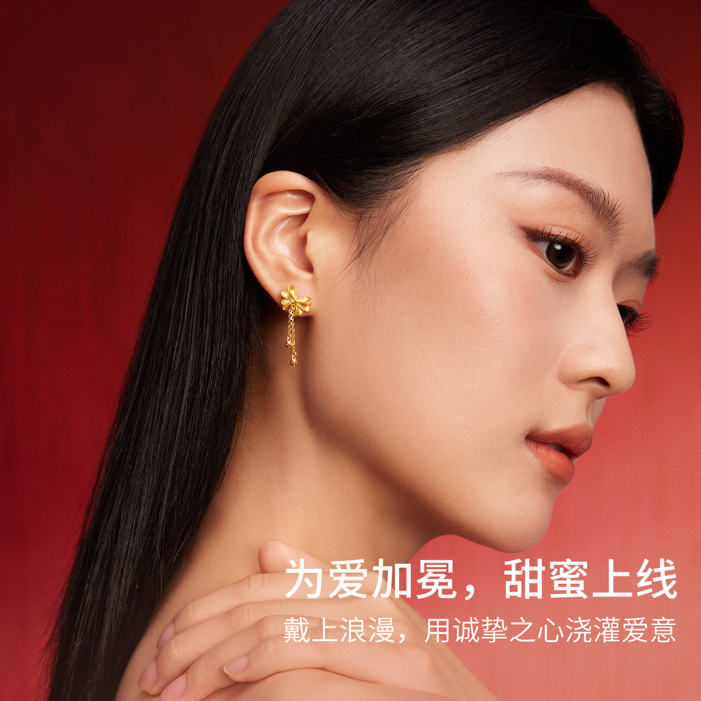 周六福黄金5G计价足金甜美公主情结耳饰公主嫁期指南系列节日礼物