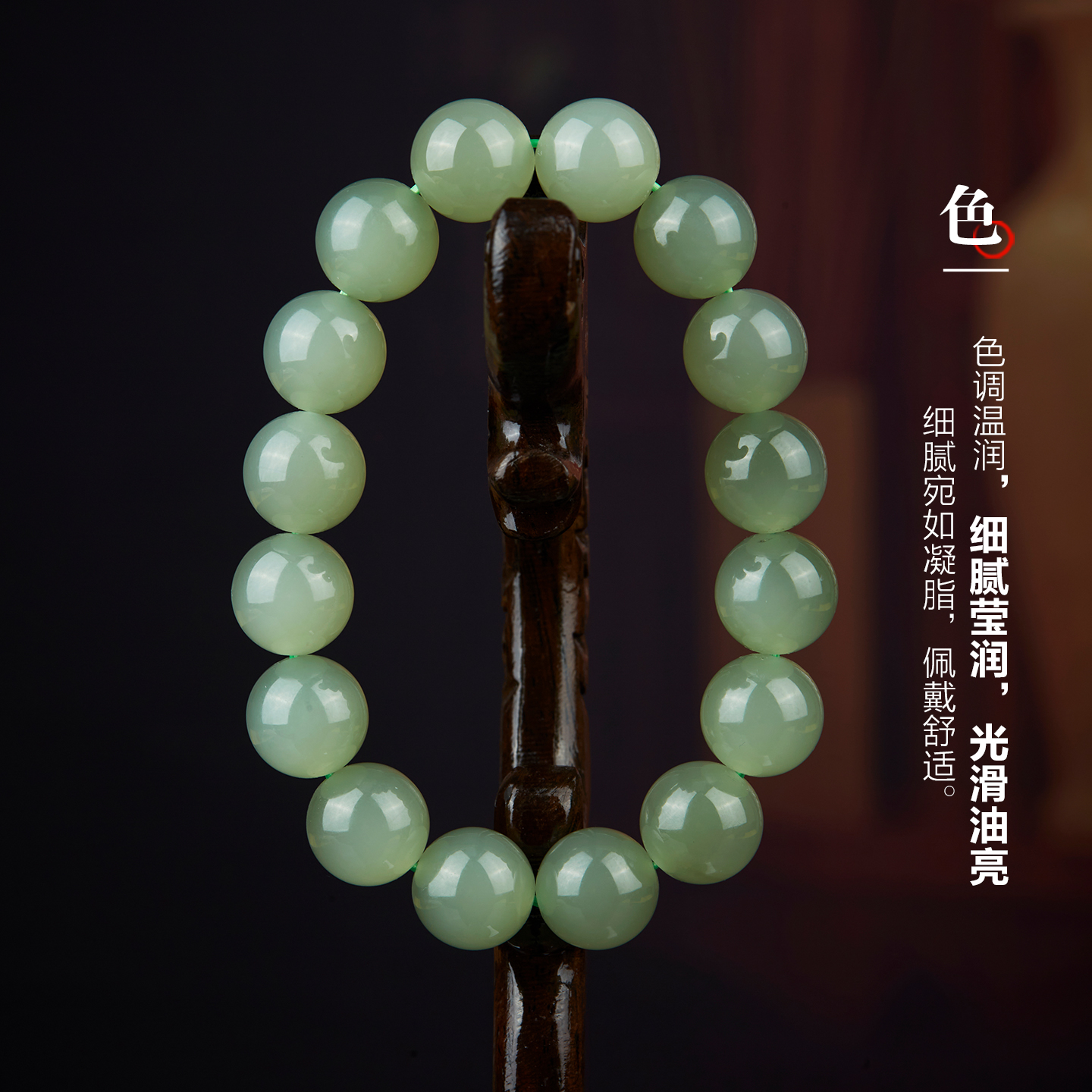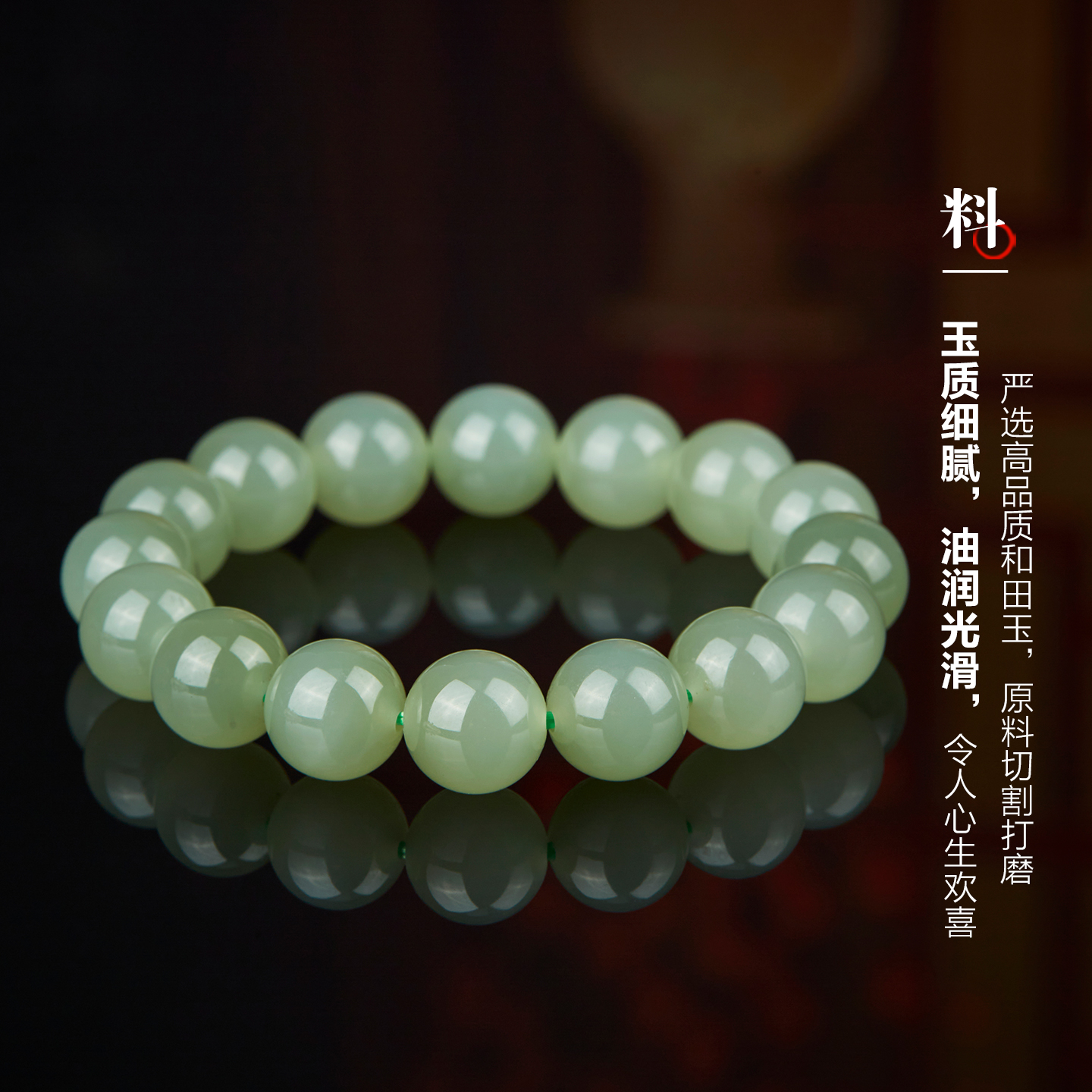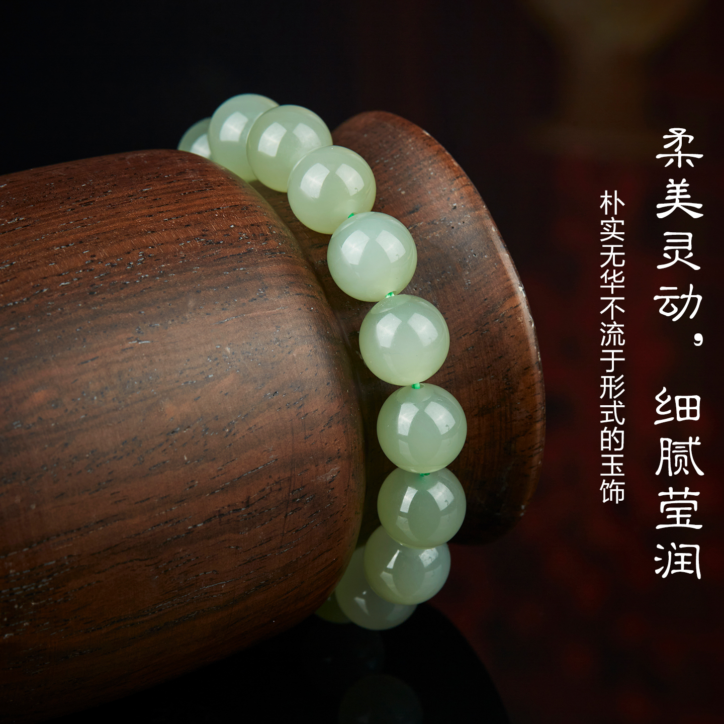 七彩云南天然和田玉手串女油润光滑玉石手链圆珠高级感大气典雅