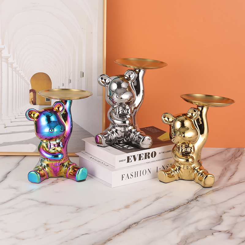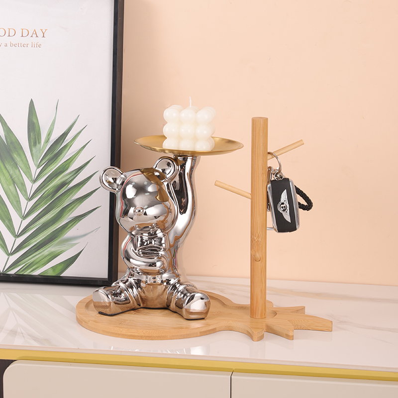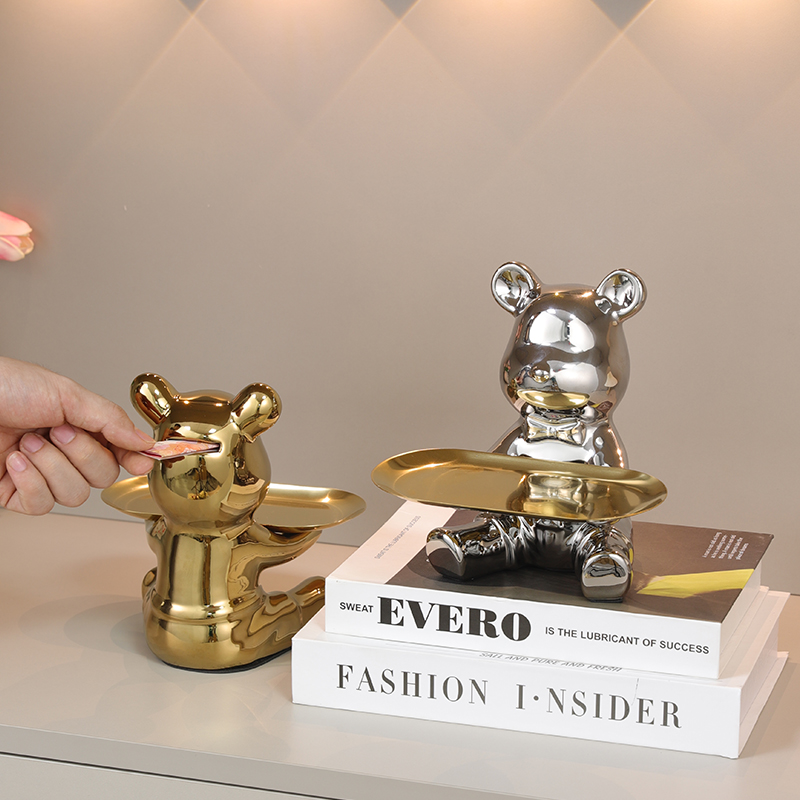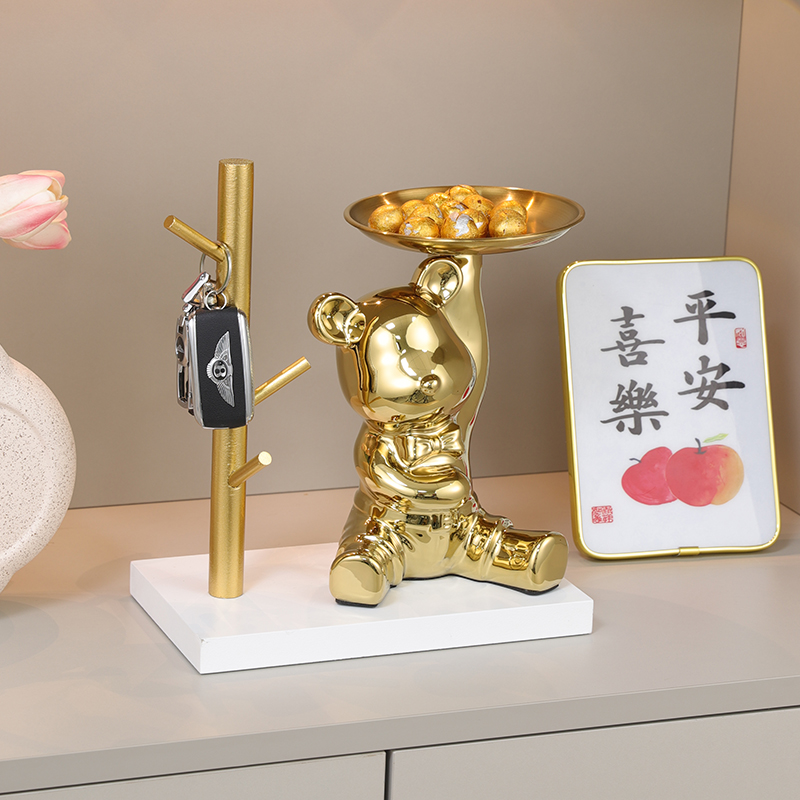 暴力熊小摆件玄关钥匙收纳坐姿托盘客厅入户进门口鞋柜电视柜装饰