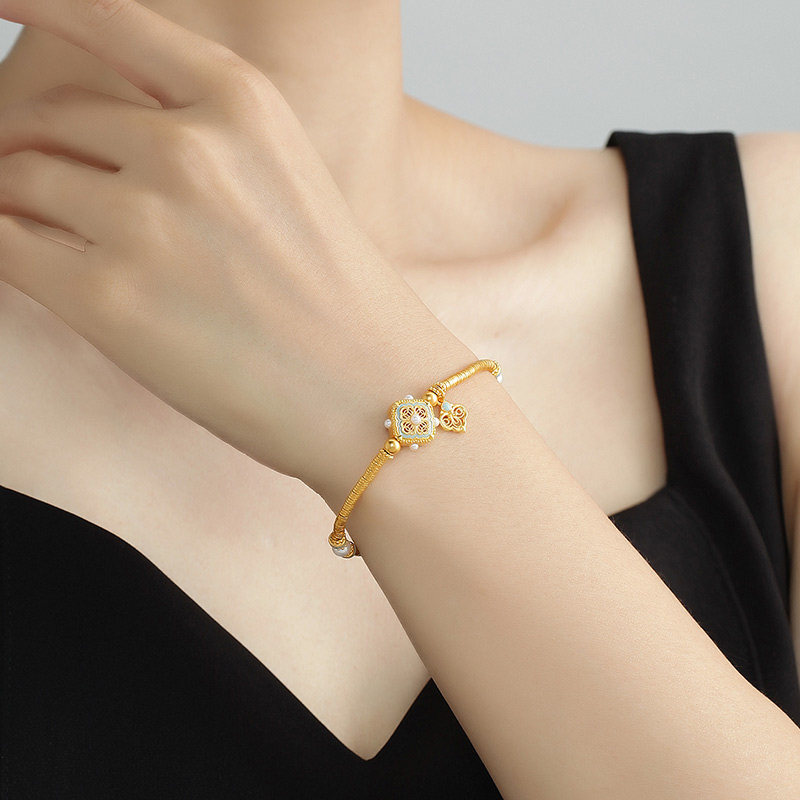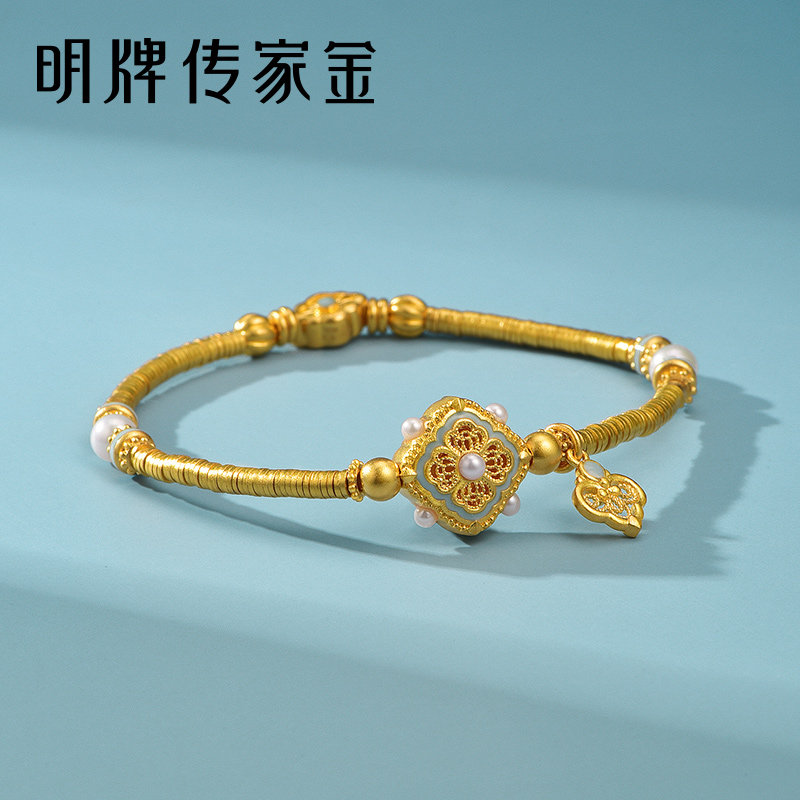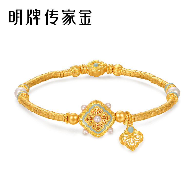 明牌珠宝古法黄金四合如意t手链宋韵系列镂空花丝足金盘缠AFK0348
