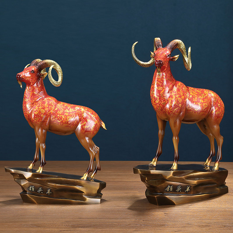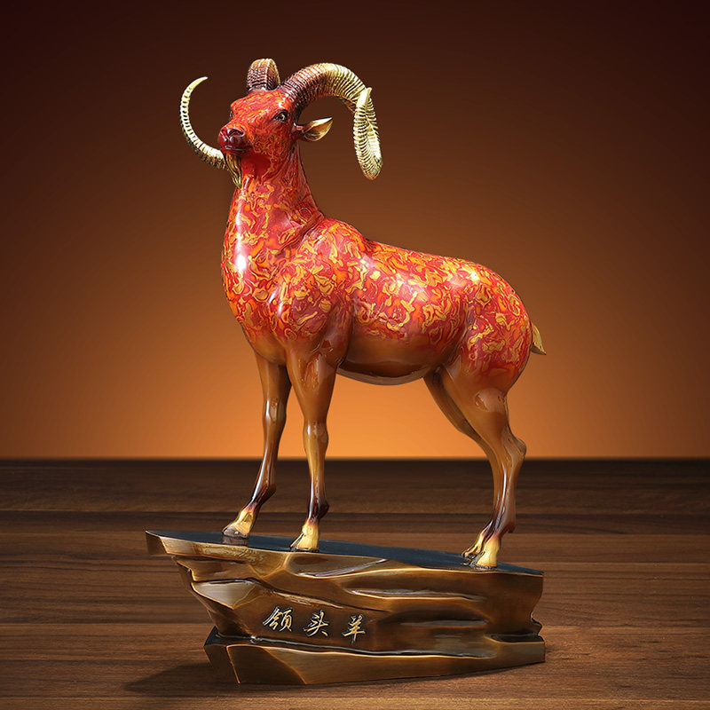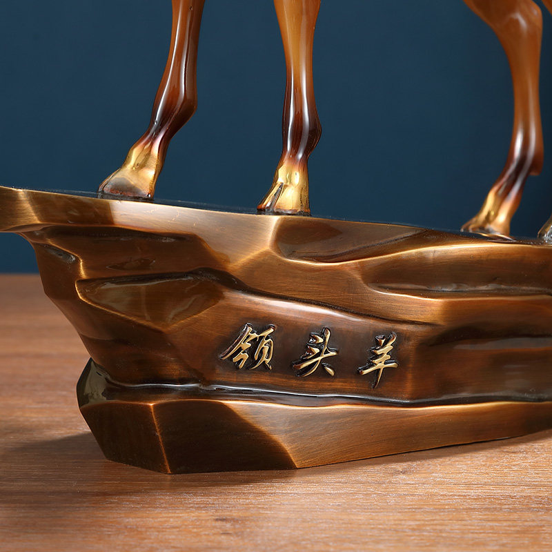 东方禧大漆领头羊摆件黄铜老板办公室客厅生肖羊装饰开业乔迁礼品