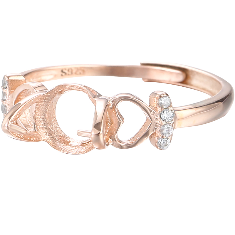 S925纯银戒指空托女款可旋转珠子心形转夹珠DIY蜜蜡珍珠托圆珠7-9