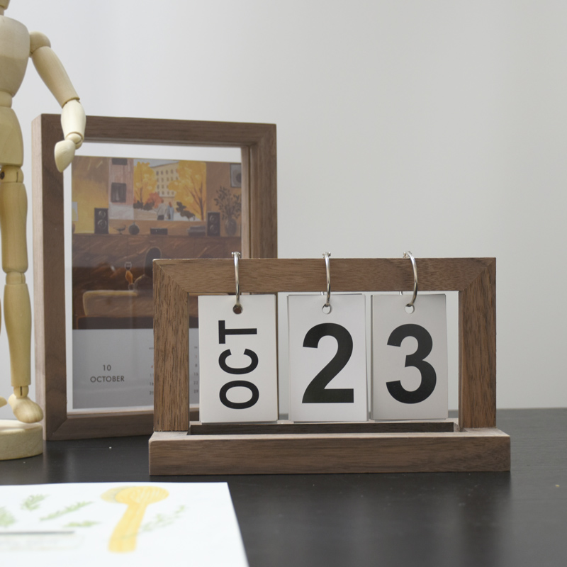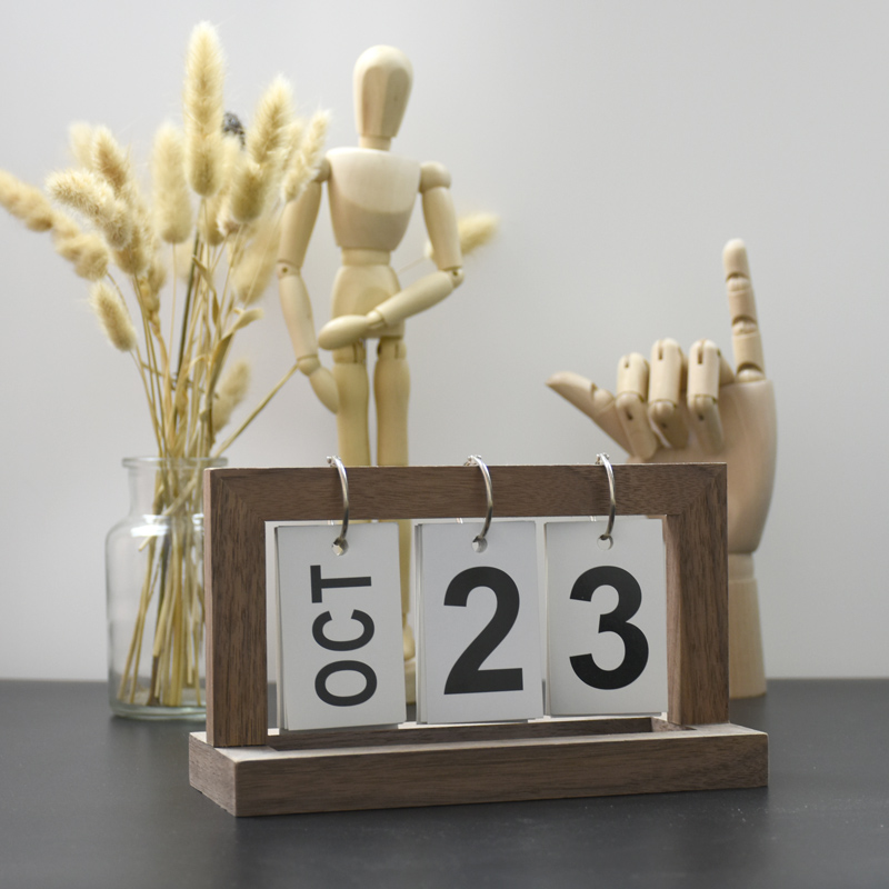 北欧ins风创意个性翻页万年台历复古木质桌面摆件简约小摆设日历