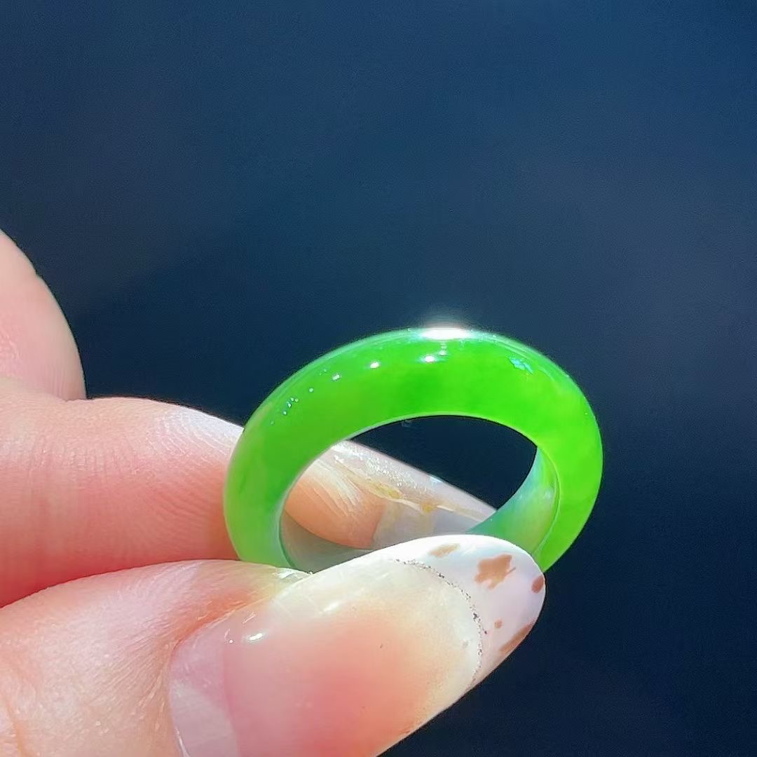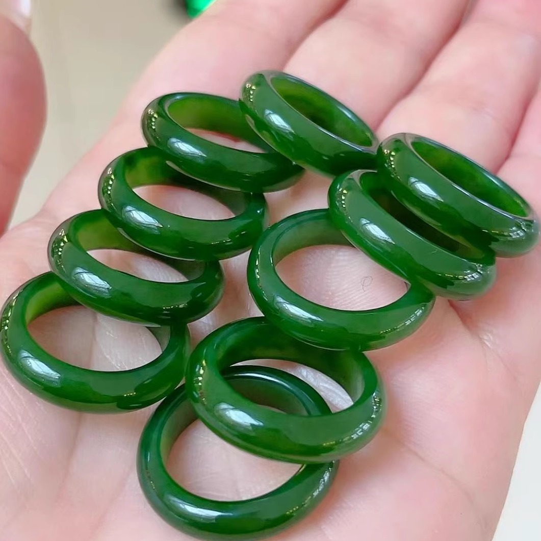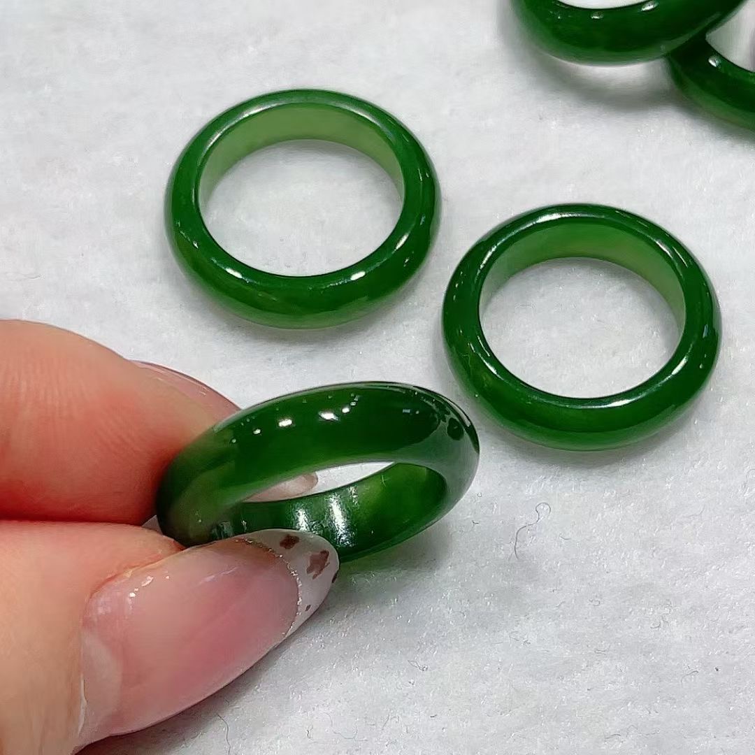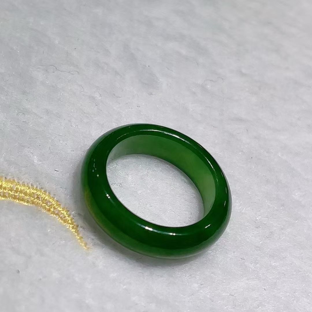 吉淼 天然和田玉碧玉老料菠菜绿戒圈戒指18k金镶嵌玉石指环