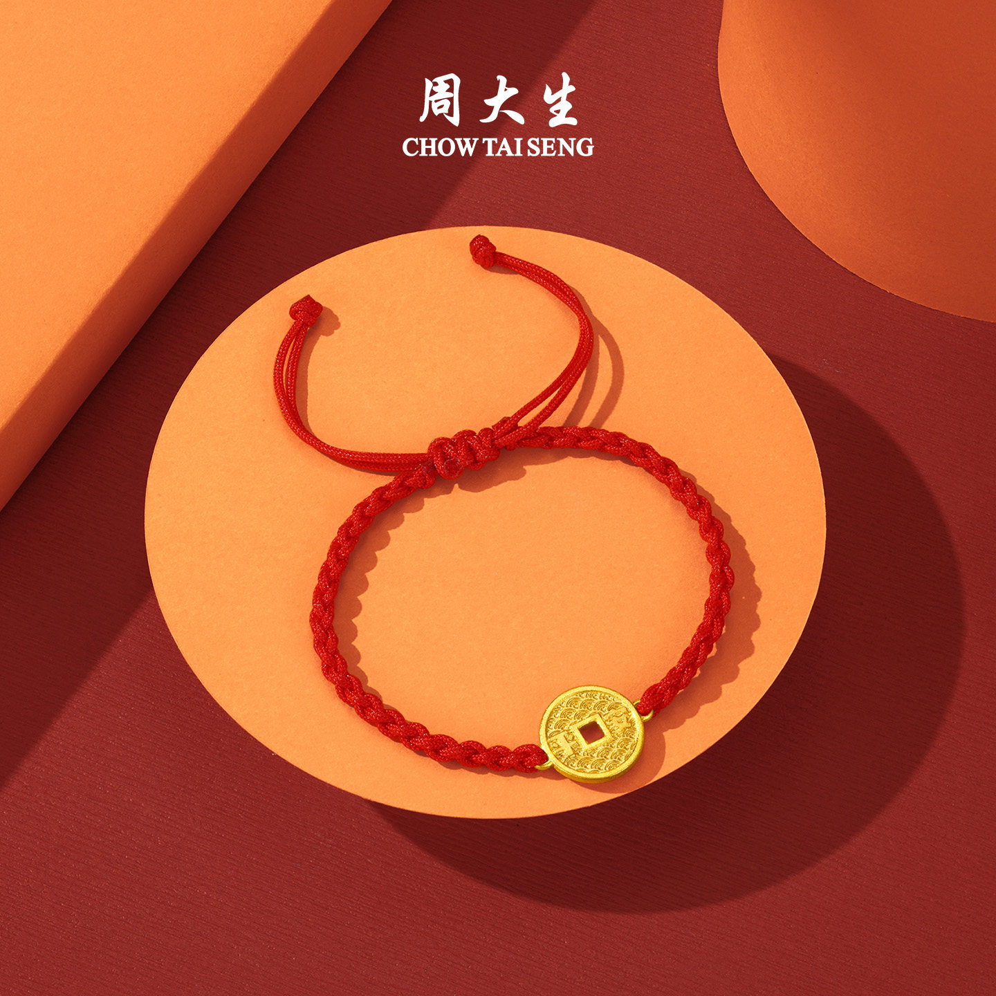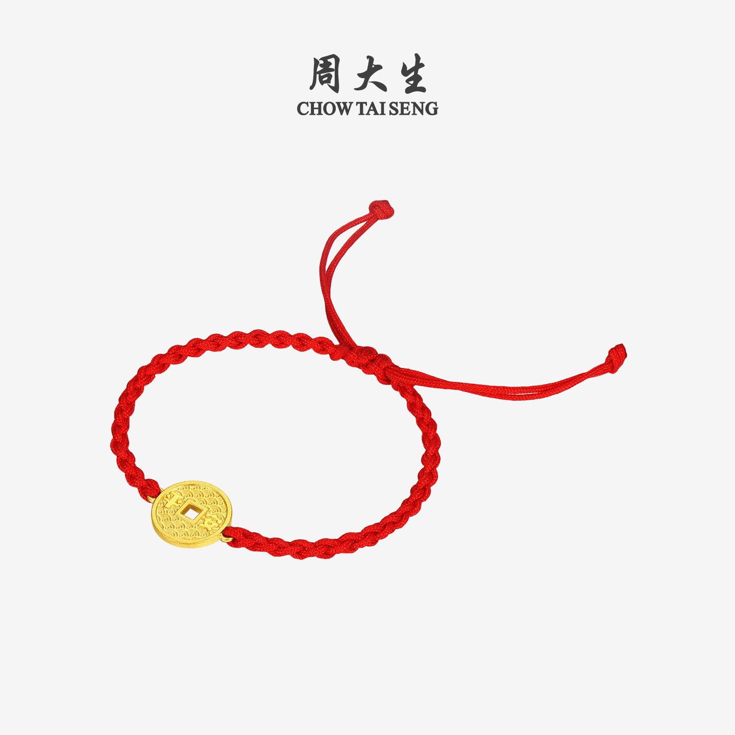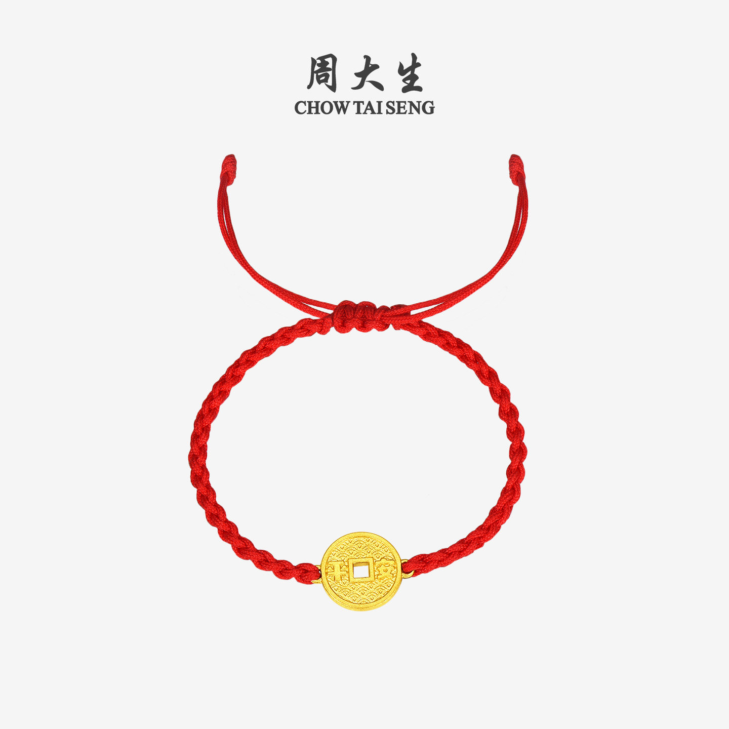 圣诞礼物周大生黄金手链平安扣足金转运珠红手绳男女宝宝周岁满月