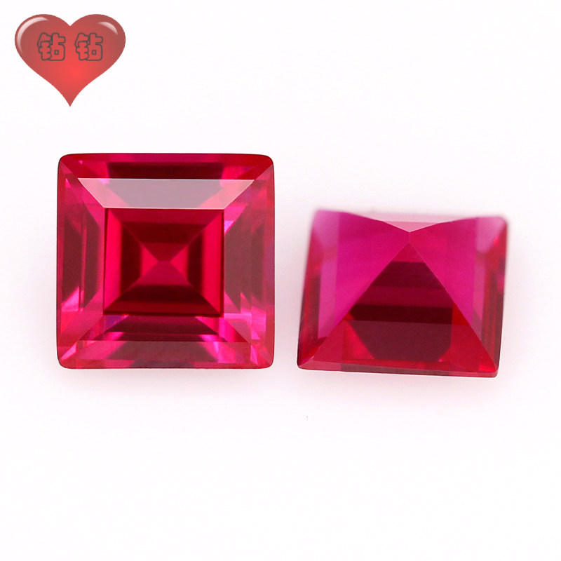 正方直角车平5#红宝石裸石戒面仿钻 合成红刚玉车平切工Ruby