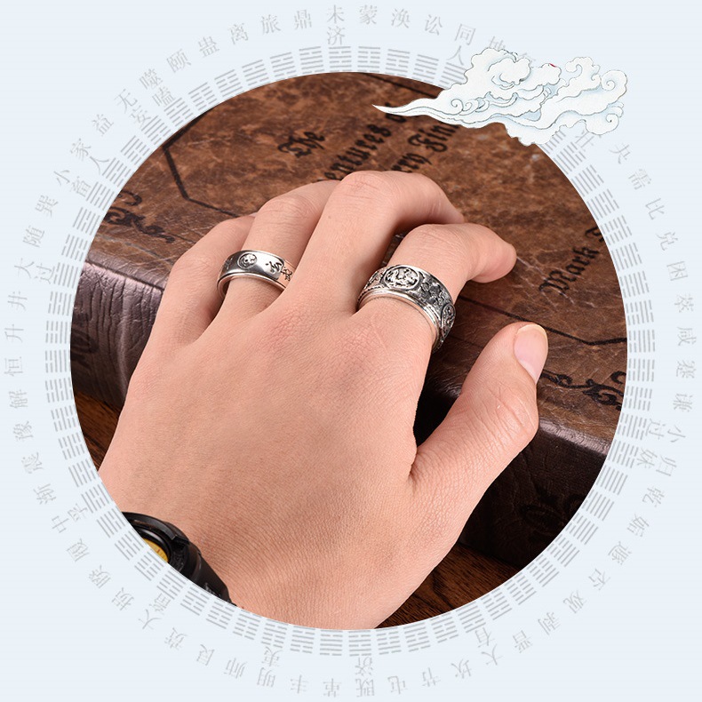 99足银四神兽戒指男士霸气复古个性时尚单身潮人宽版扳指食指环