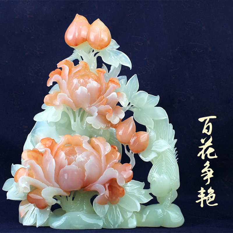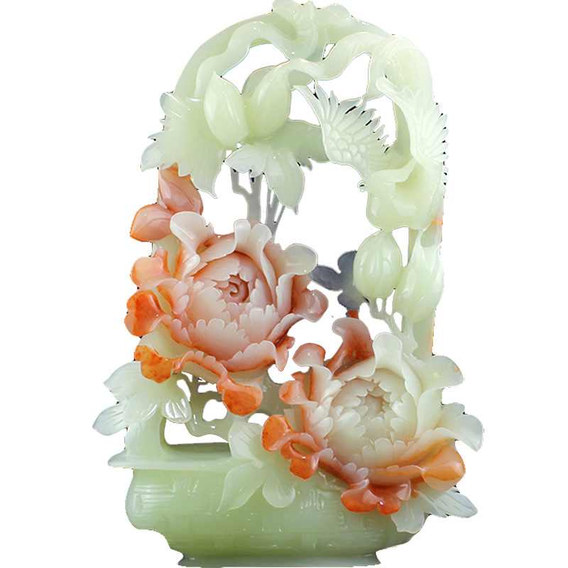 天然创意玉石摆件花开富贵高档雕刻工艺家居客厅开店装饰送礼佳品