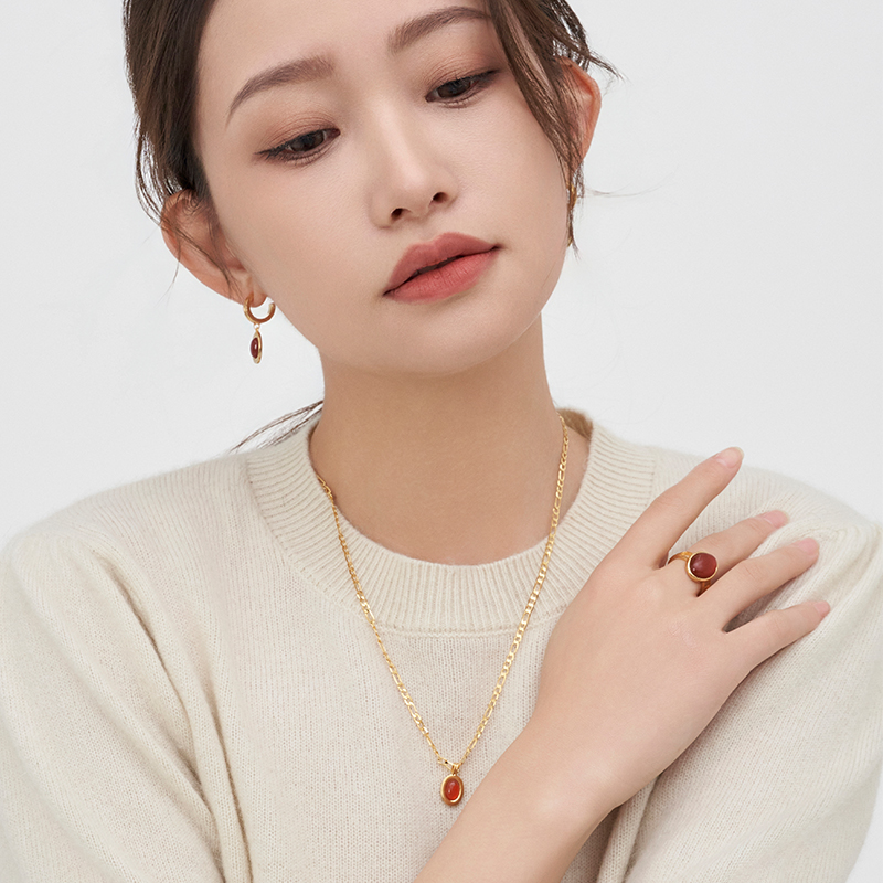 NININA红色白色玛瑙合金项链气质高级感白轻奢锁骨链吊坠百搭配饰