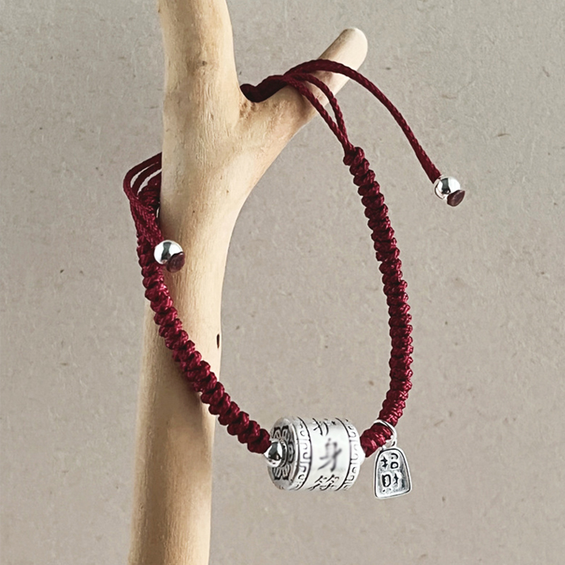999纯银手链女款本命年红绳编织绳招财护身符转运珠情侣红色手绳