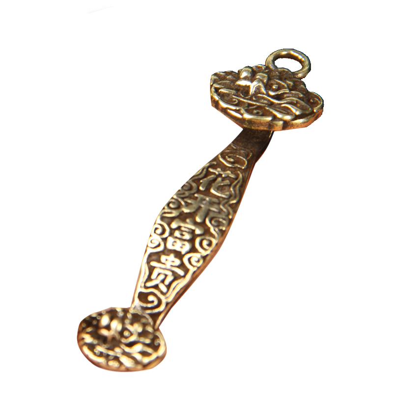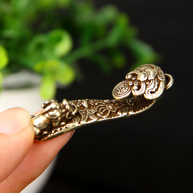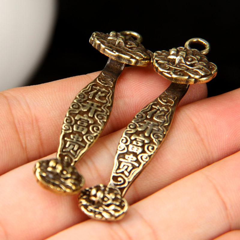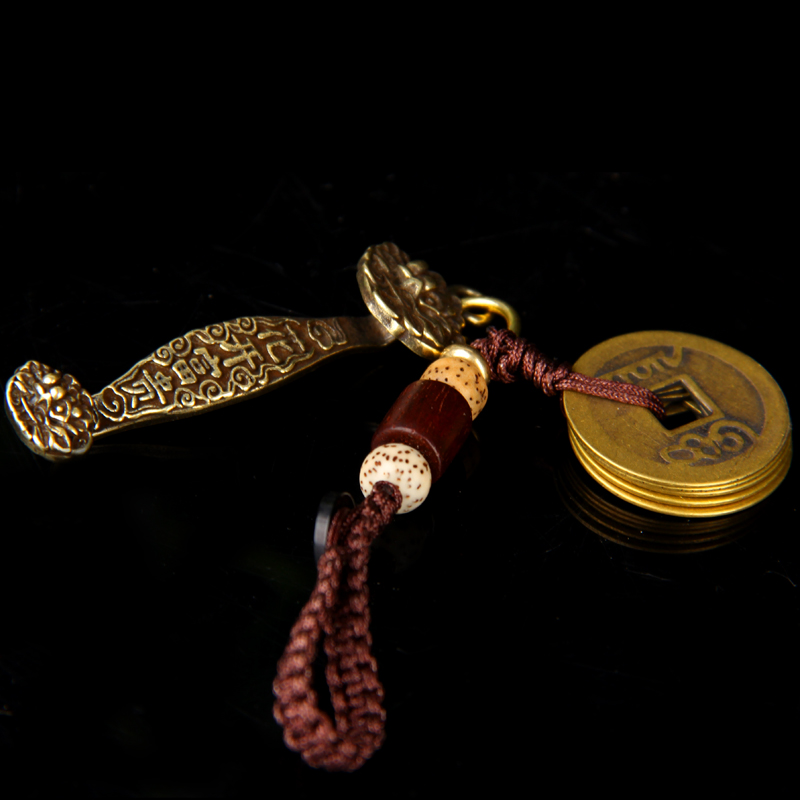 铜如意钥匙扣挂件 五帝钱款铜如意挂件花开富贵如意钥匙扣