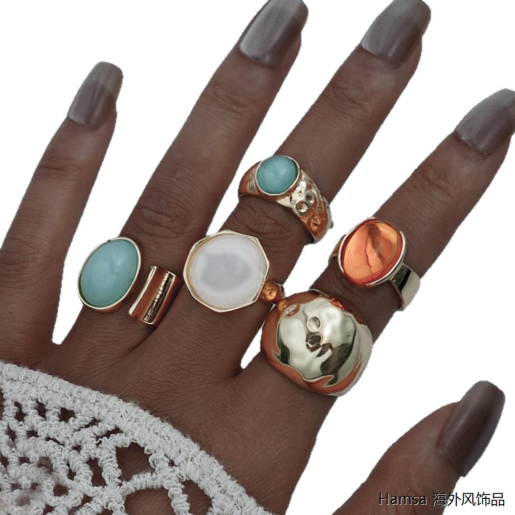 5件套跨境新款不规则合金嵌亚克力戒指套装Ring Set 5-piece Set