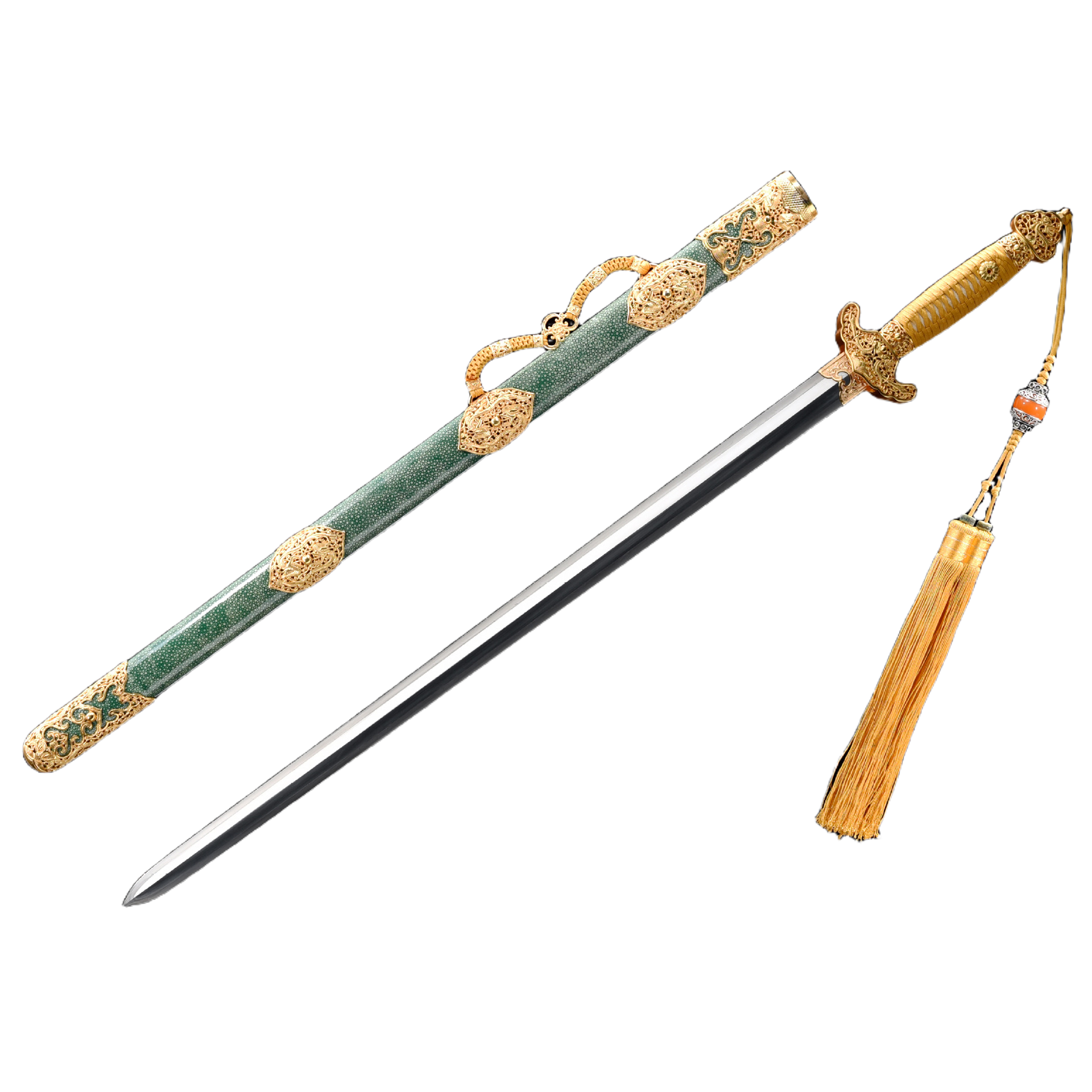 龙泉市刀剑一体烧刃唐剑古法夹钢鎏金硬清剑传统影视冷兵器未开刃