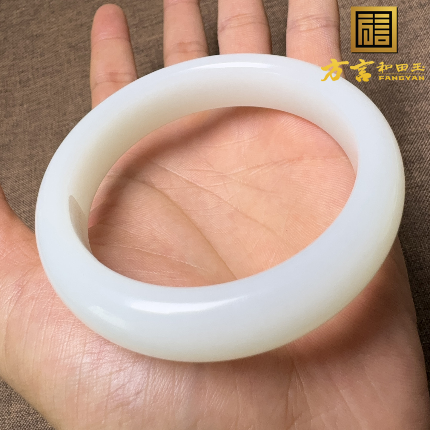 震撼方言和田玉精品珍藏级新疆细腻油润且末羊脂白玉卡60mm手镯X5