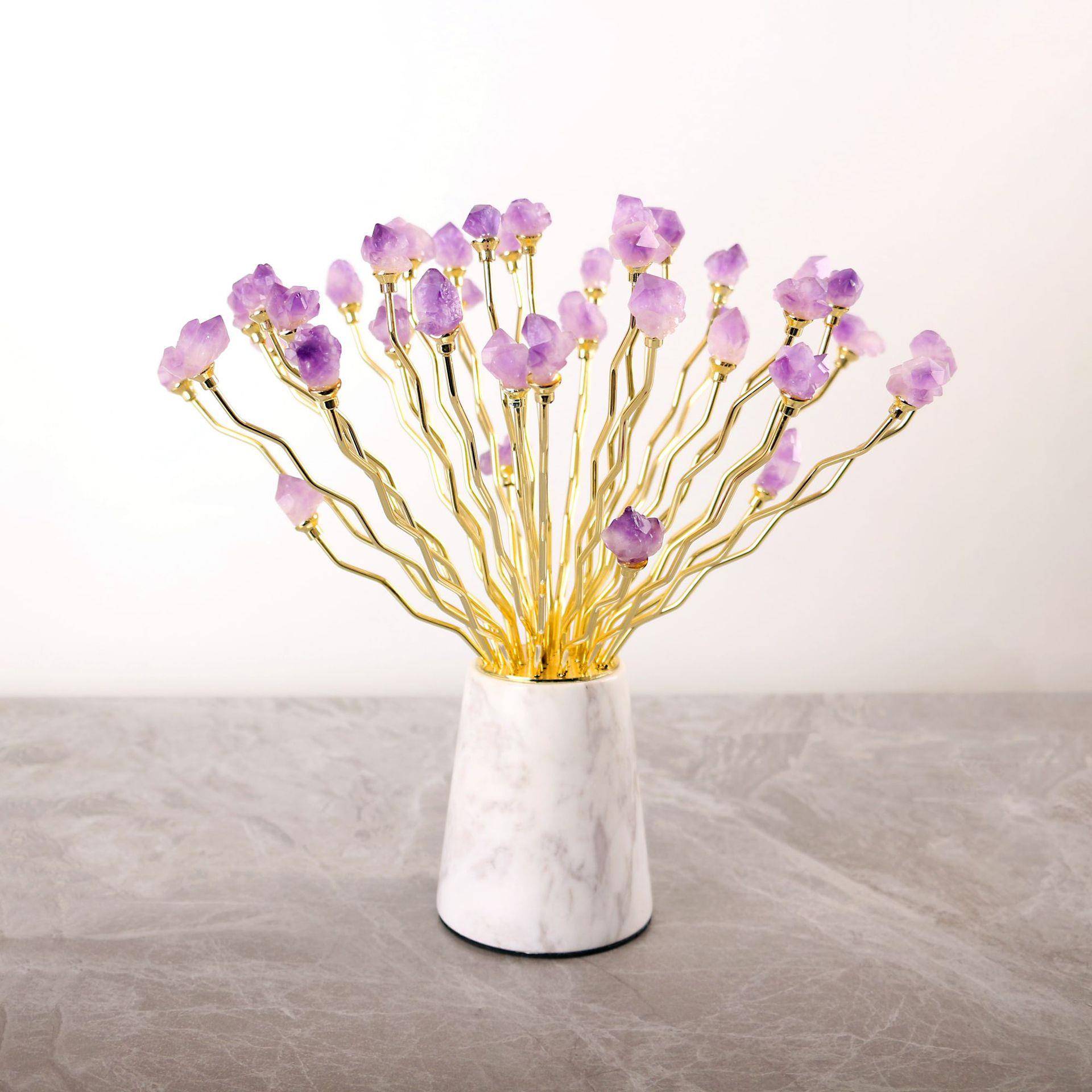 现代轻奢创意金属花枝紫水晶高级感摆件客厅酒柜桌面装饰工艺品