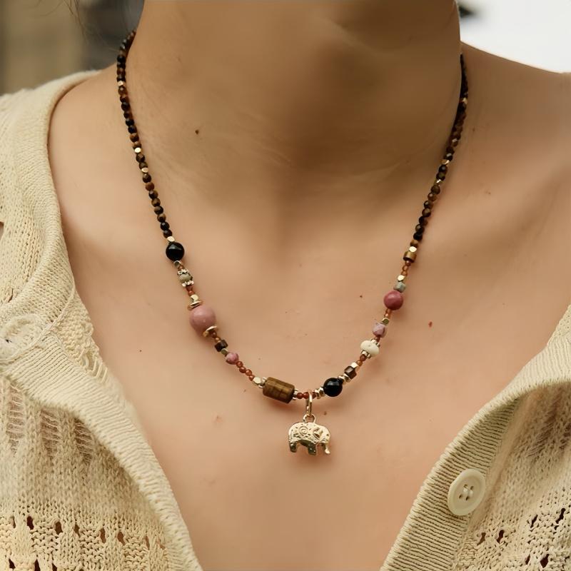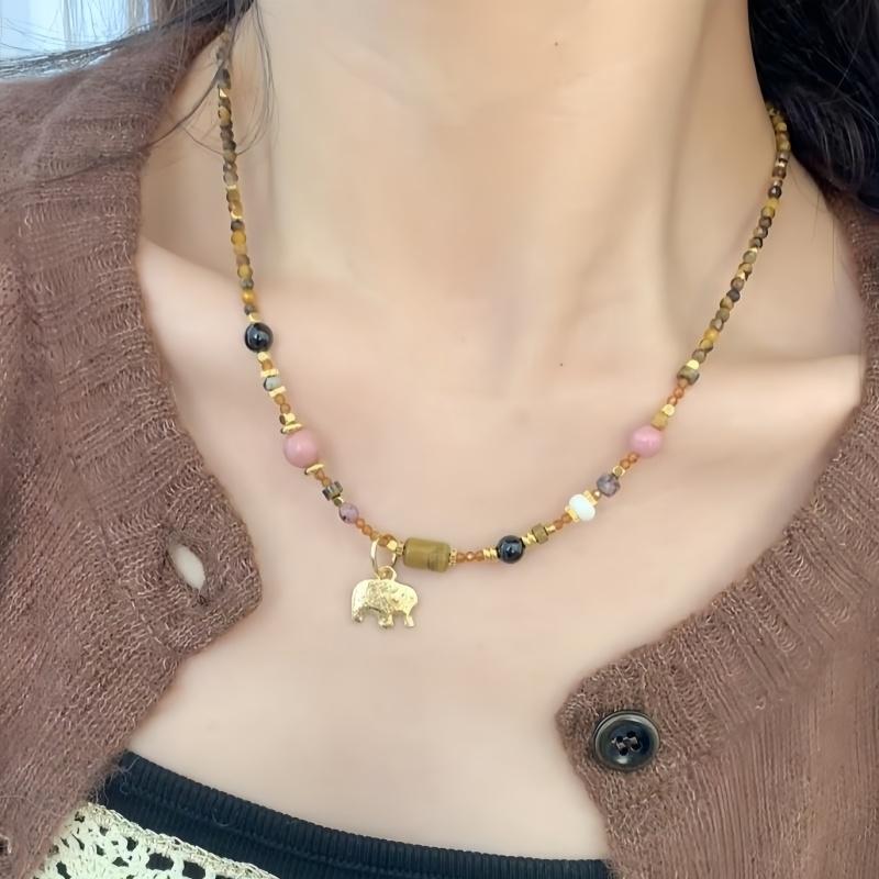 梦幻岛小象项链美拉德高级感手工精致串珠锁骨链