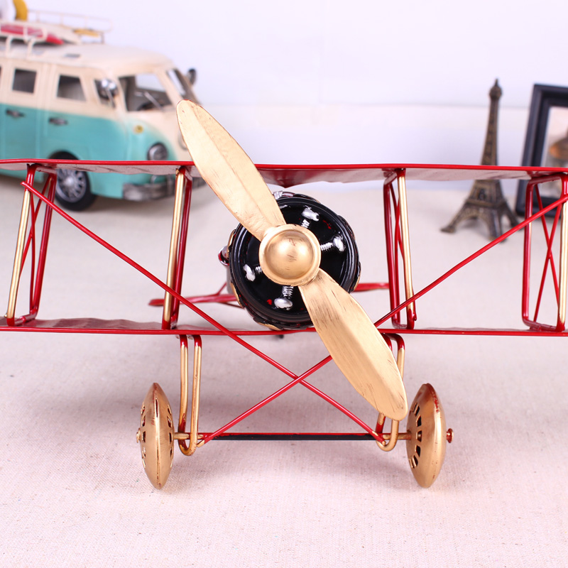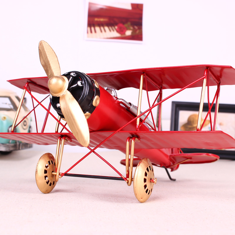 复古飞机模型仿真铁皮装饰小摆件创意工艺品家居客厅美式乡村摆设