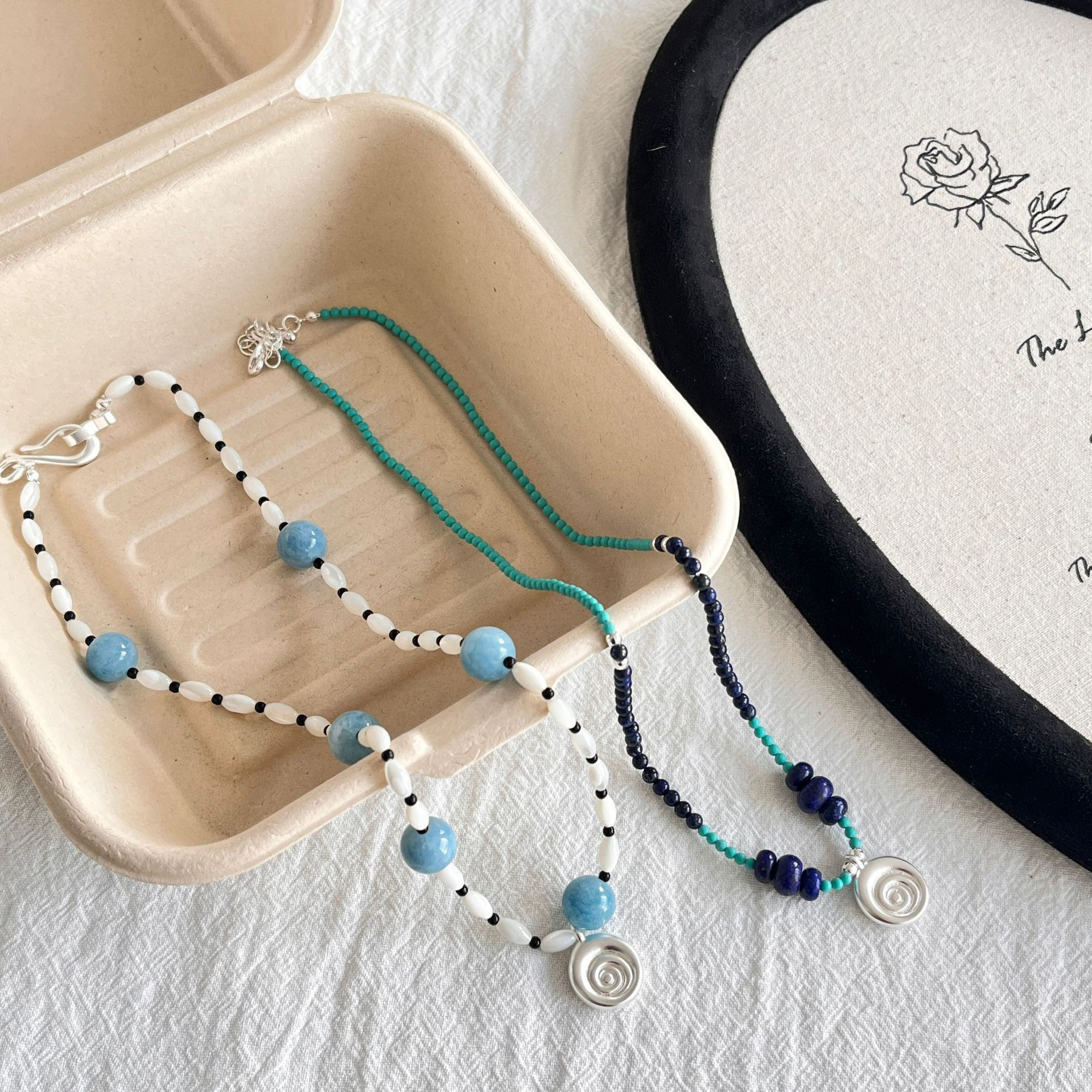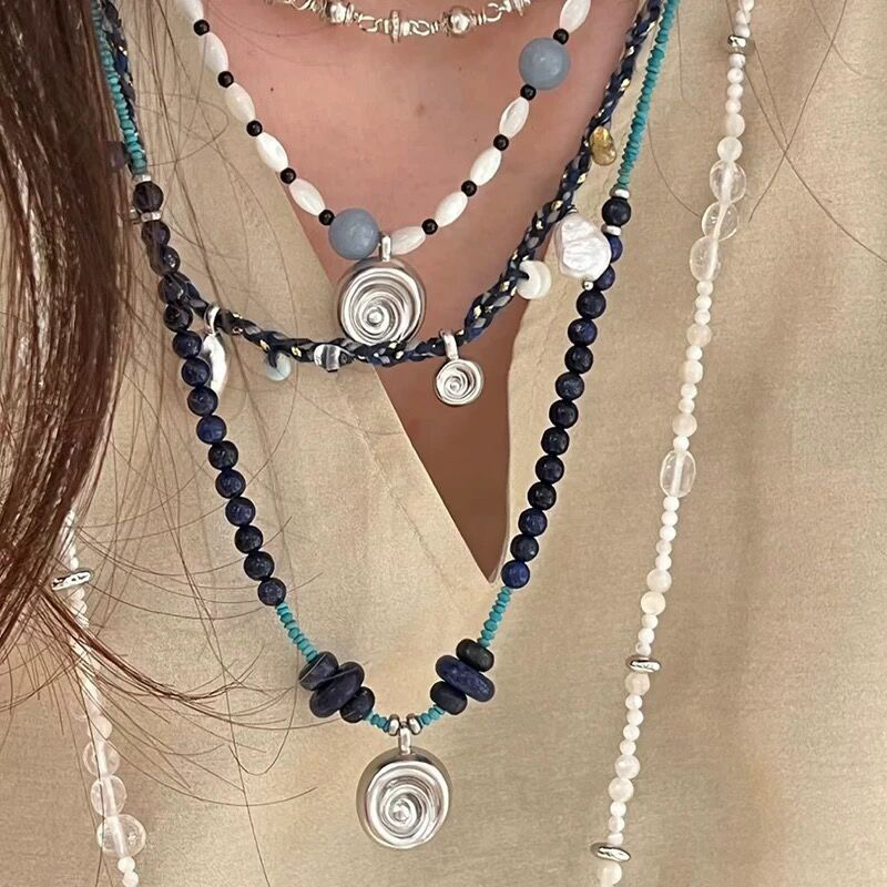 海洋蓝颈链串珠混珠链时髦项链青金石个性多色系蓝色夏新锁骨松石