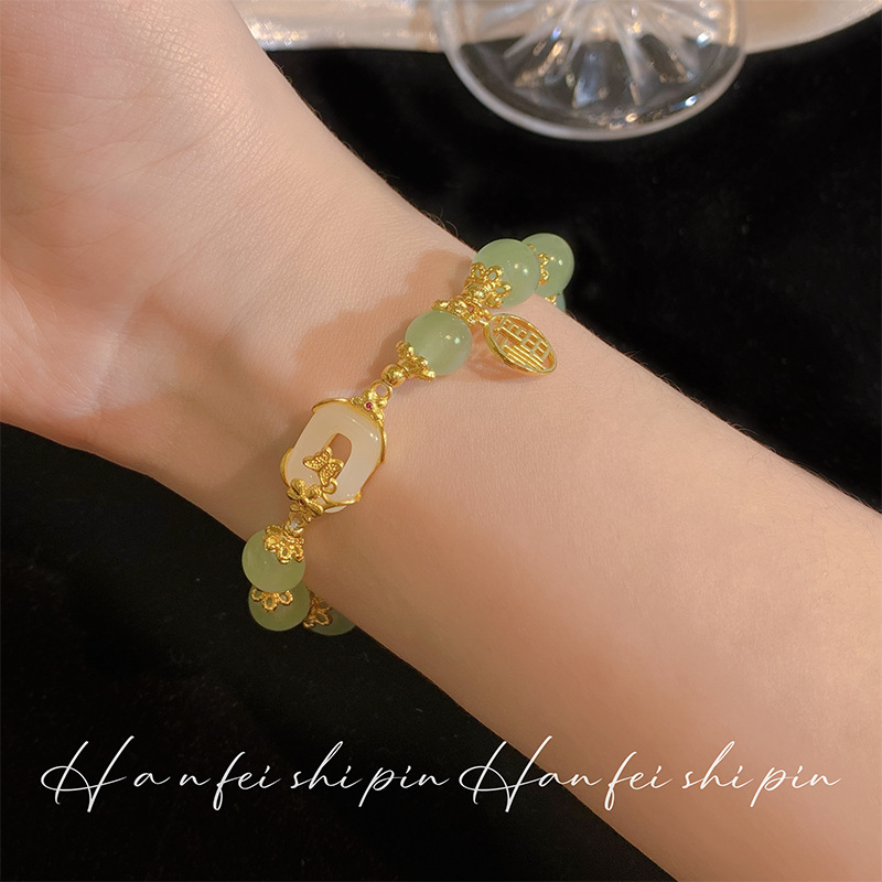 新款仿和田玉蝶舞飞花手链女时尚复古串珠单圈手环小众设计百搭