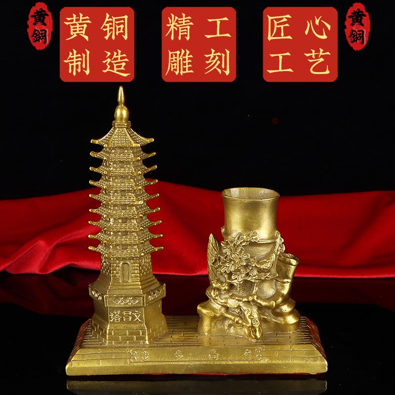 黄铜文昌塔d笔筒摆件宝塔9九层文峰塔家居办公室书桌书房学生摆设