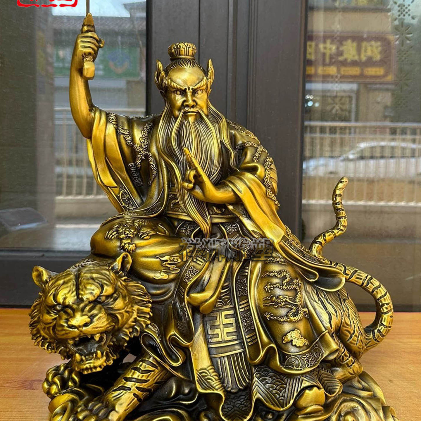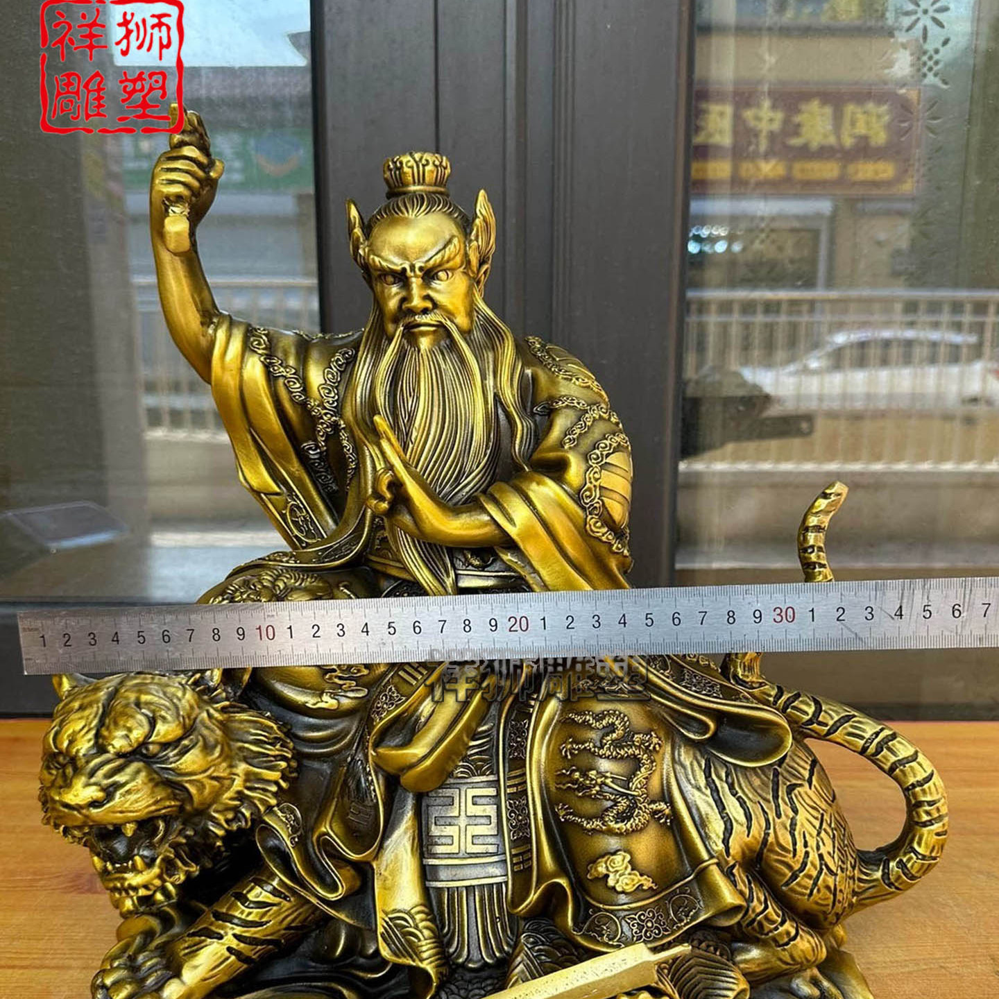 祥狮雕塑黄铜铸造张天师神像大型佛堂供奉摆件制作厂家供应精工款