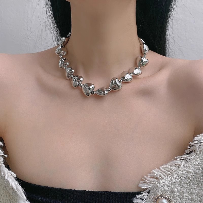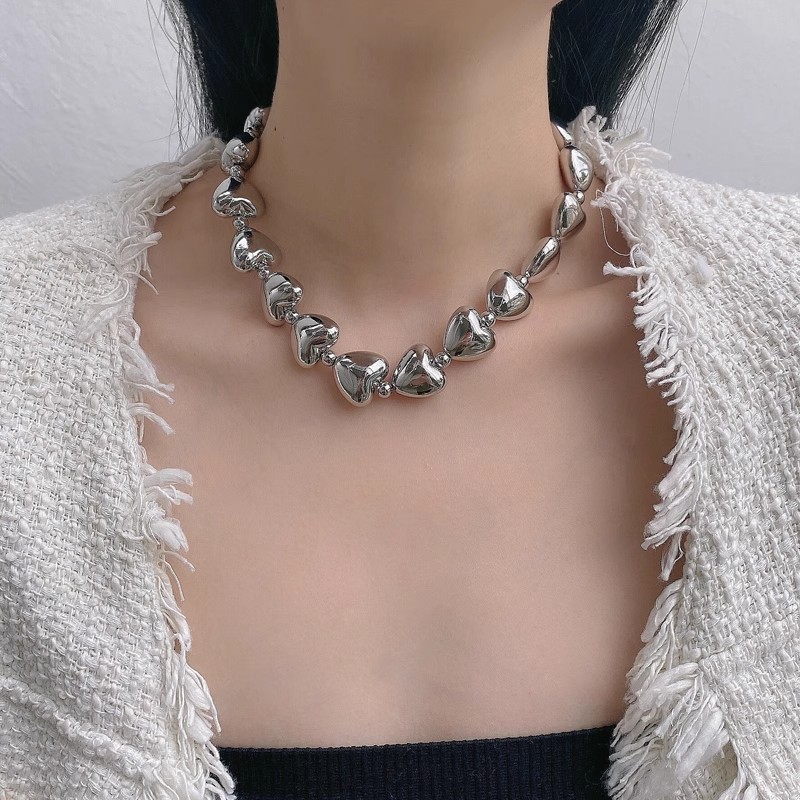 韩国东大门金属爱心串珠项链颈链女小众设计网红气质高级感锁骨链