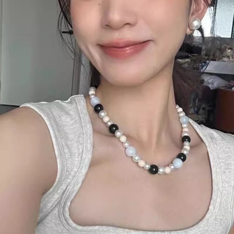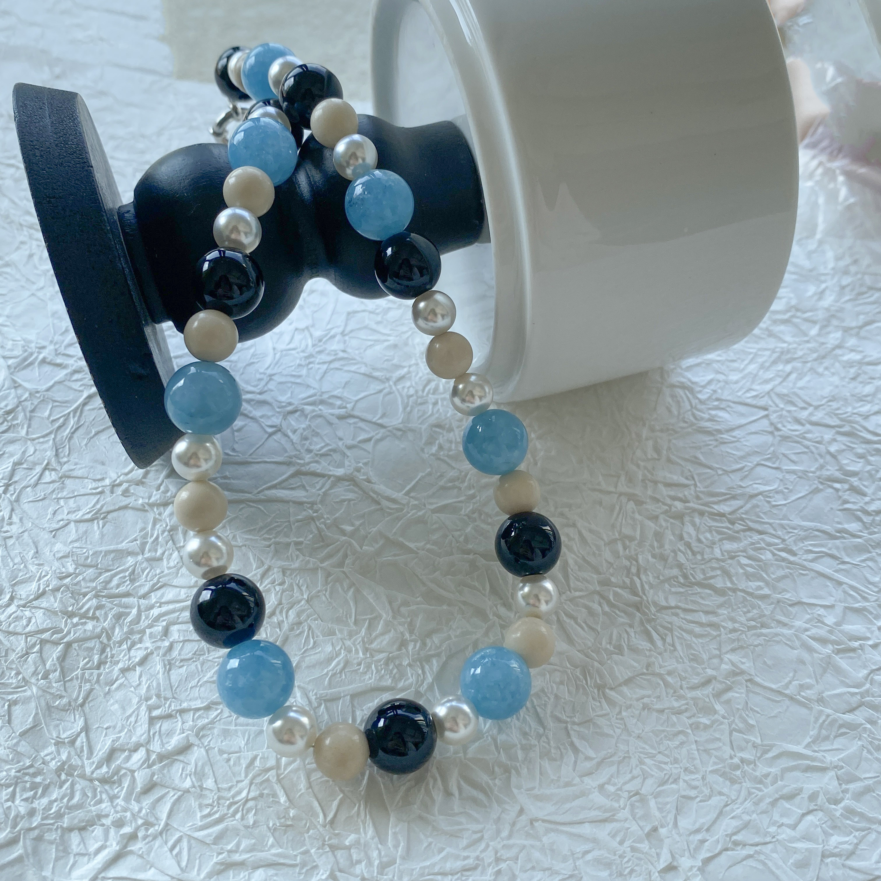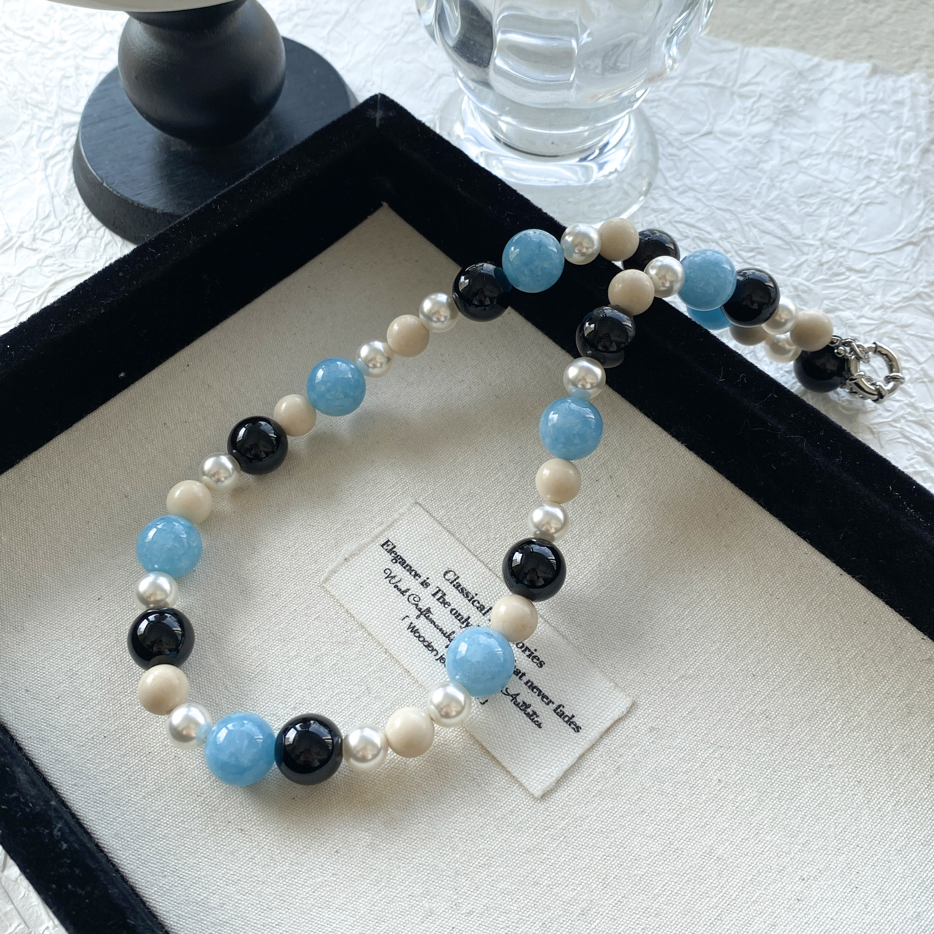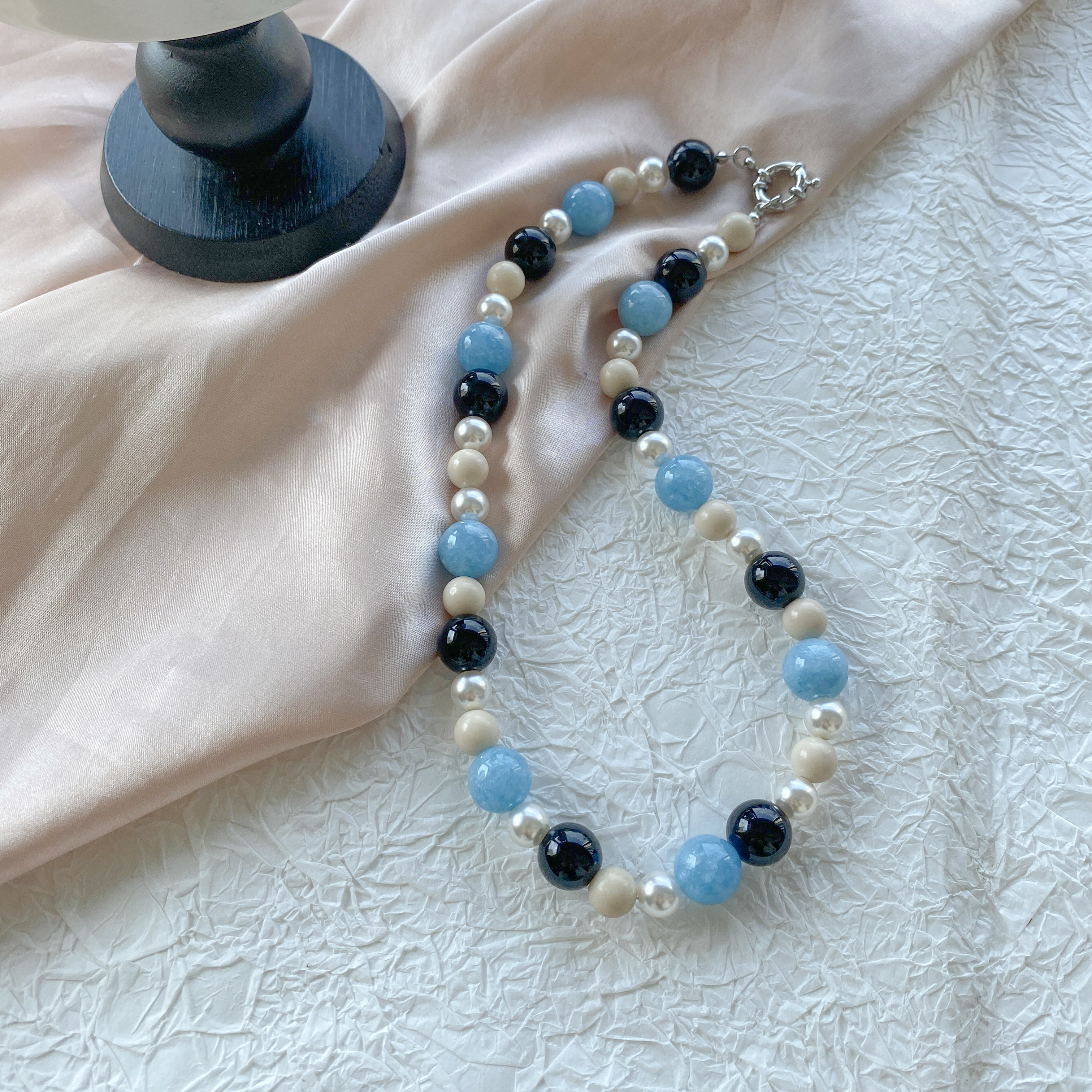 珍珠天然石蓝色锁骨链海蓝宝水晶串珠不规则链女夏日轻奢小众颈链