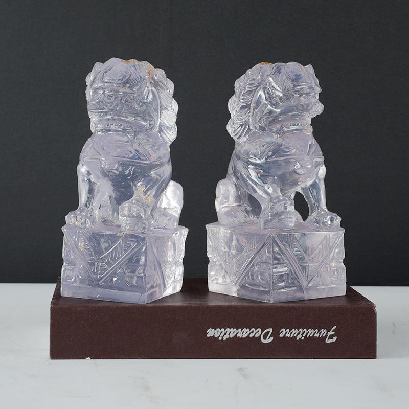 新中式轻奢透明金箔狮子摆件样板间书房玄关博古架动物装饰品摆设