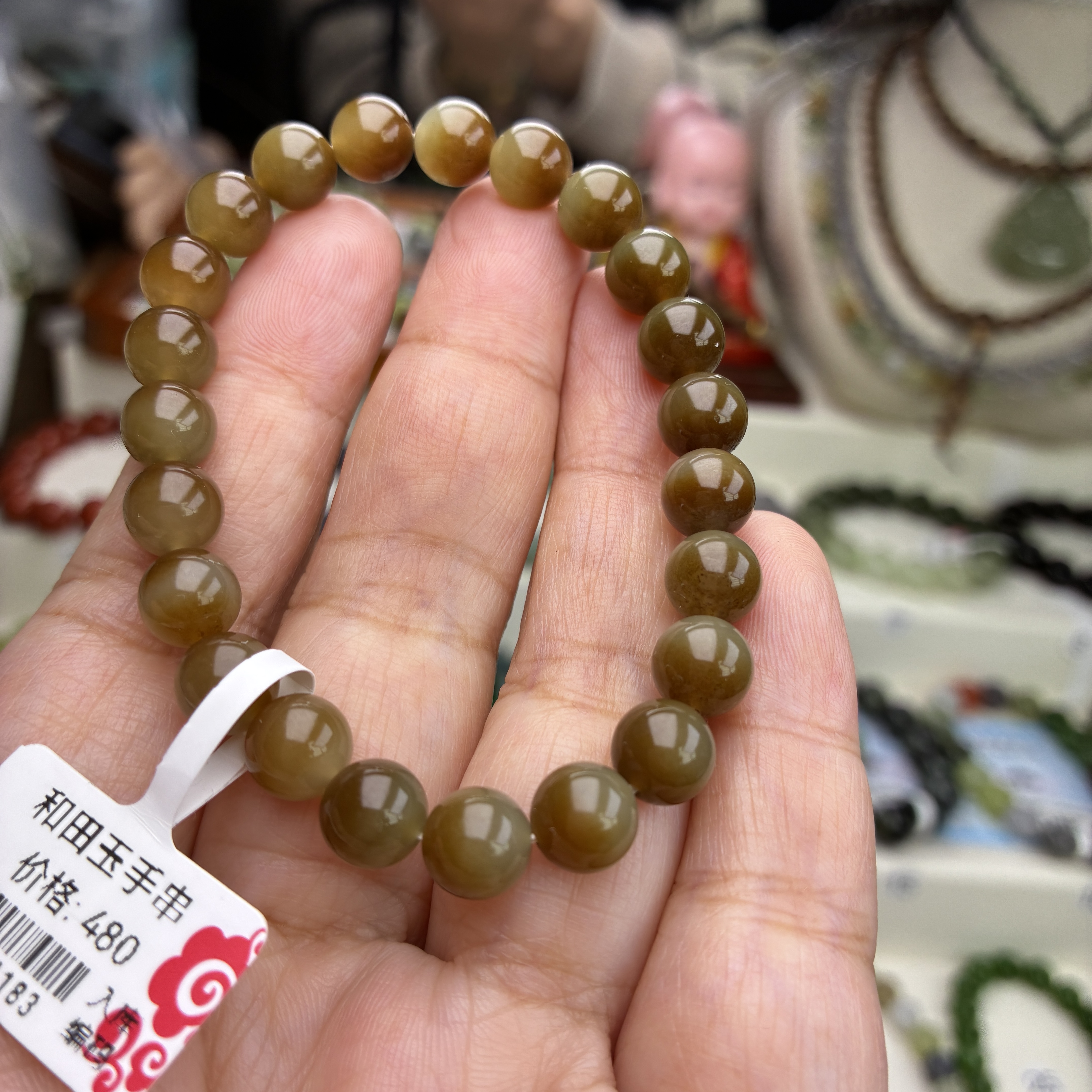 天然和田玉新疆且末糖白手串8mm女款串珠手链时尚高级复古气质