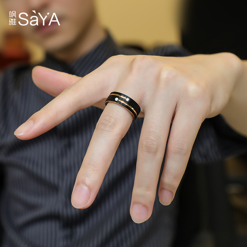 飒雅莫桑石钻戒男潮单身戒食指戒子E乌金黑色个性轻奢霸气男士戒