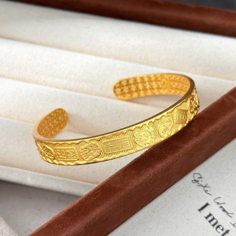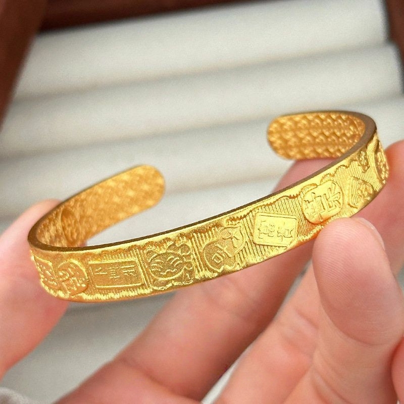 当前位置:首页>商品详情>古法吉言手镯女实心宽面沙金仿真黄金实心正品千万两招财手环首饰