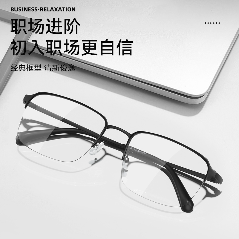 博士眼镜欧拿近视眼镜男可配度数超轻钛架商务半框镜框网上配男款