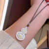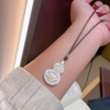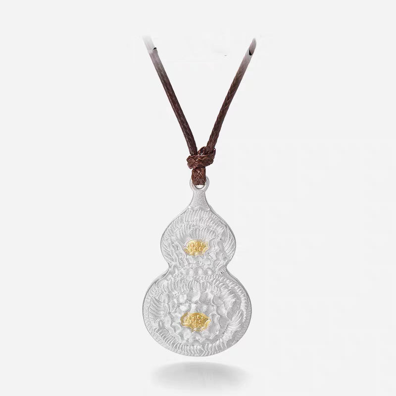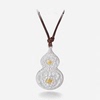 香港正生纯银999足银吊坠项链描金富贵牡丹花葫芦中式送礼毛衣链