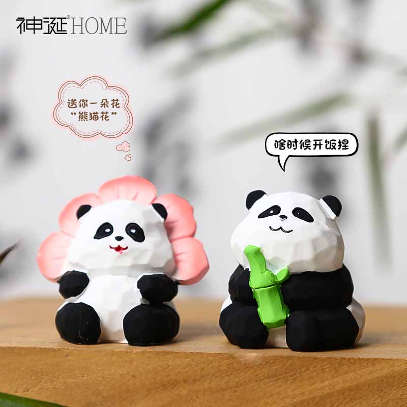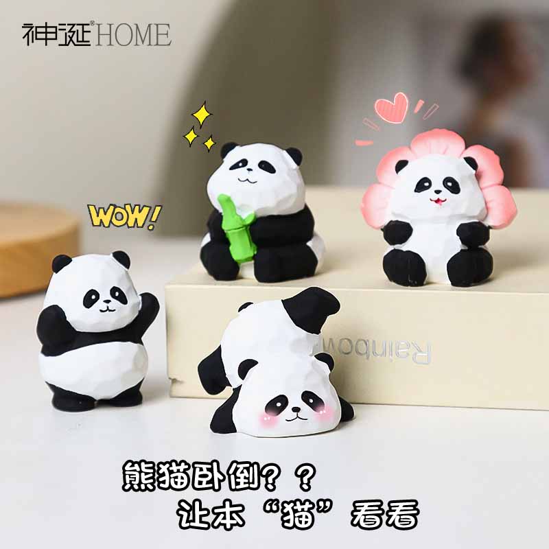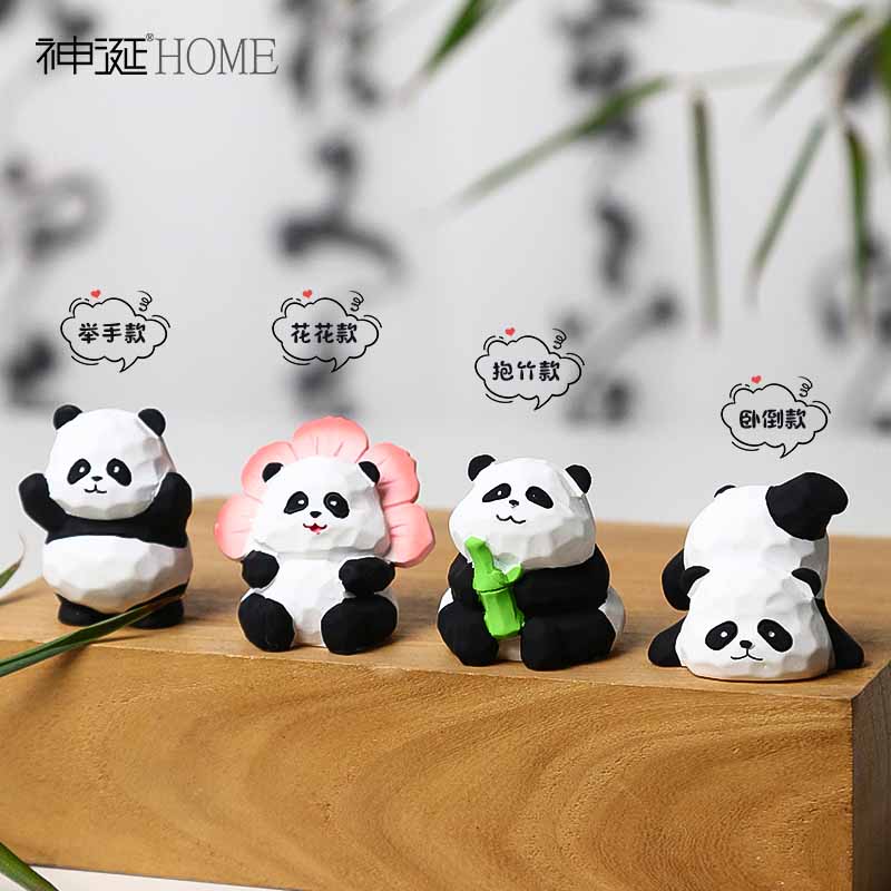国潮创意木雕风熊猫小摆件家居客厅桌面办公室工位装饰品生日礼品