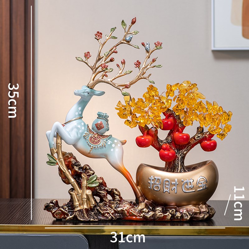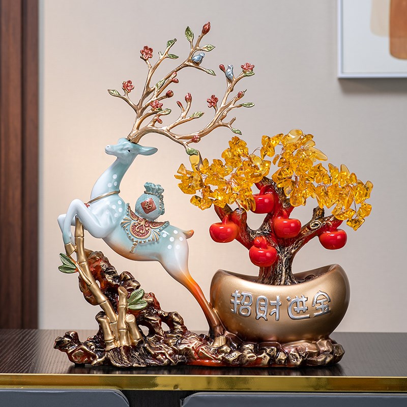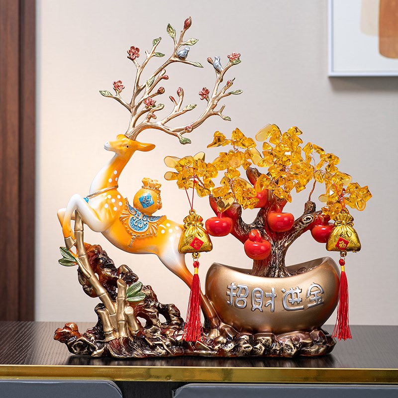 新中式发财鹿摆件客厅玄关办公室前台摇钱树装饰新居乔迁开业礼品