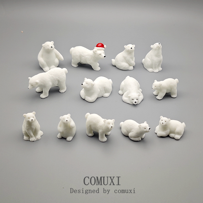 仿真动物模型 北极熊玩偶 树脂工艺品微景观摆件桌面微缩盆景饰品