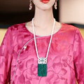2025新款碧玉新中式国风毛衣项链女长款流苏绿色玛瑙轻奢旗袍配饰