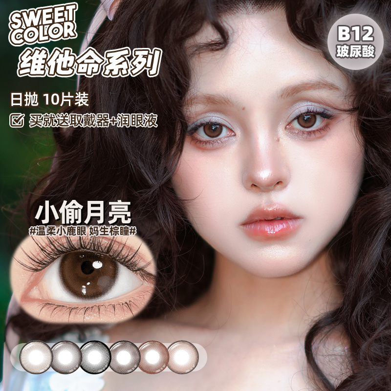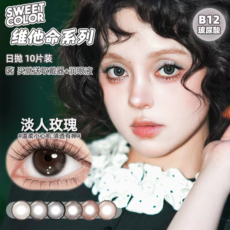 SweetColor[维他命B12粉水]日抛美瞳10片UV防护修女玫瑰隐形眼镜