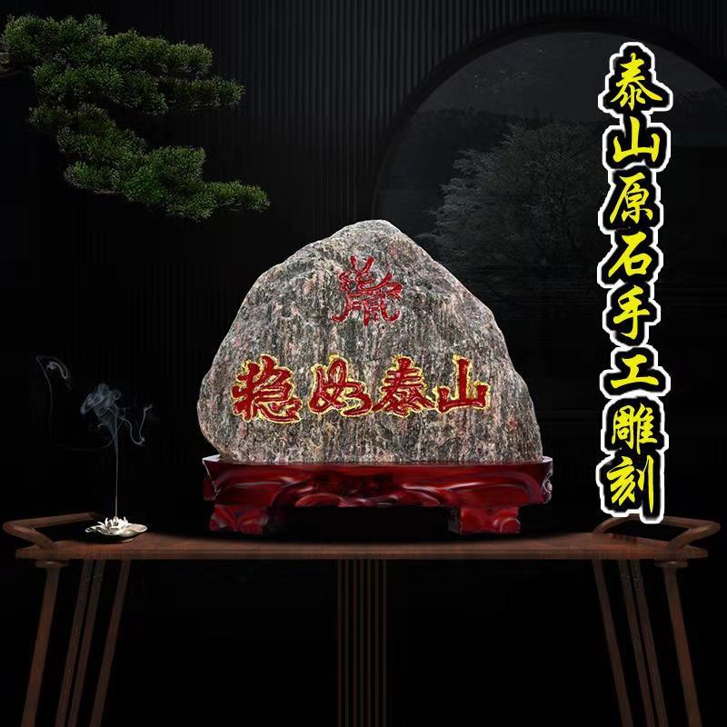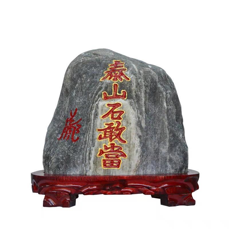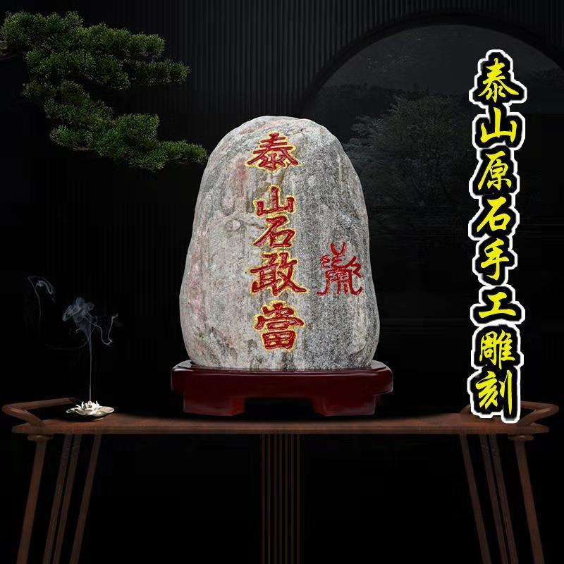 泰山石敢当泰山镇宅招财室外办公室靠山原石石头小朱砂大风水摆件
