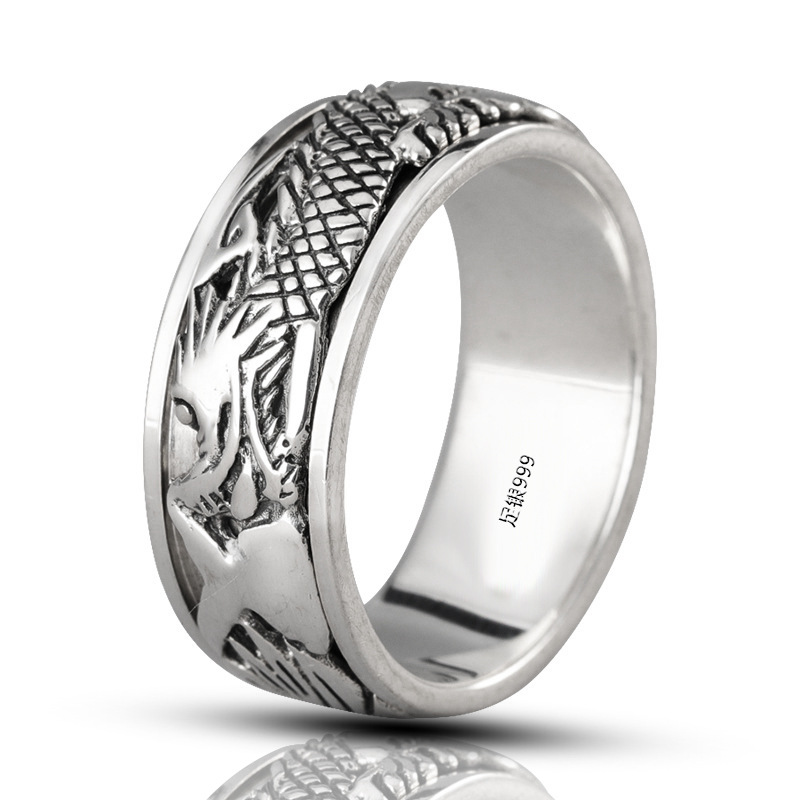 可旋转盘龙转动戒指男士时来运转龙年个性单身霸气复古食指环戒