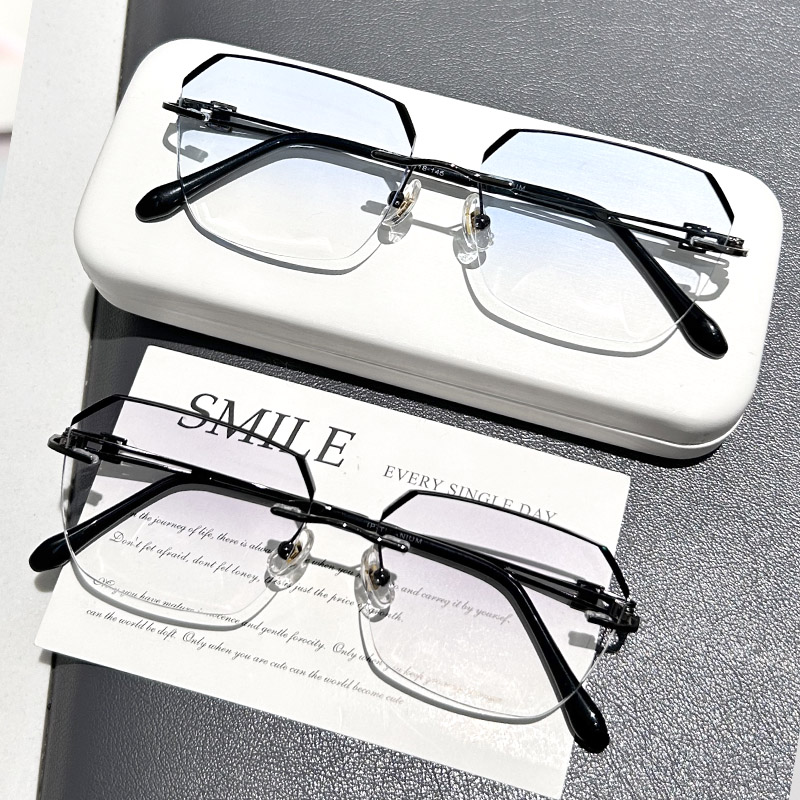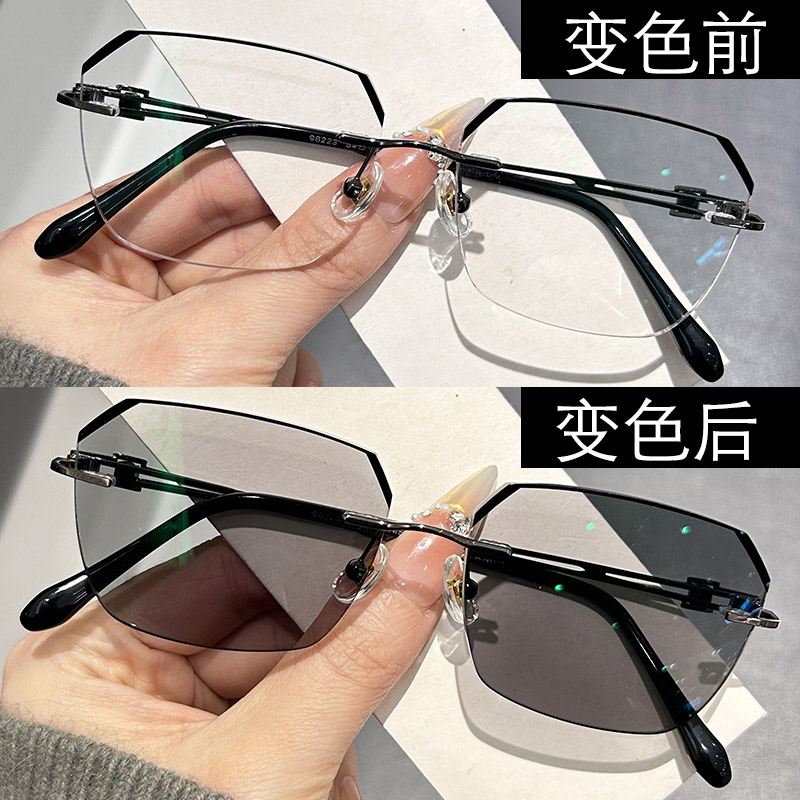 超轻变色无框近视眼镜男可配有度防蓝光商务平光镜散光无边框镜架