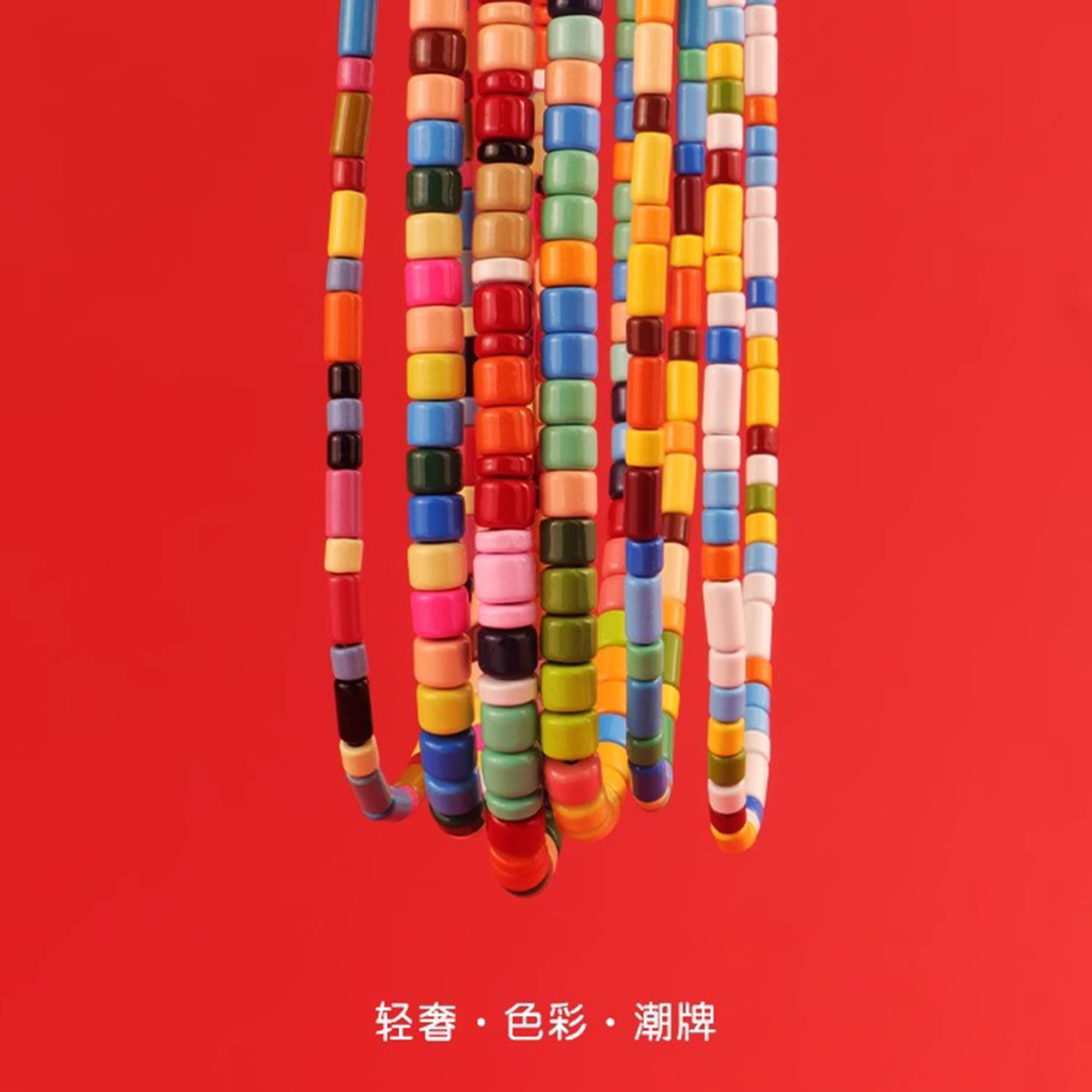 白百何孙千同款彩色串珠项链女夏天波西米亚多巴胺锁骨链小众设计