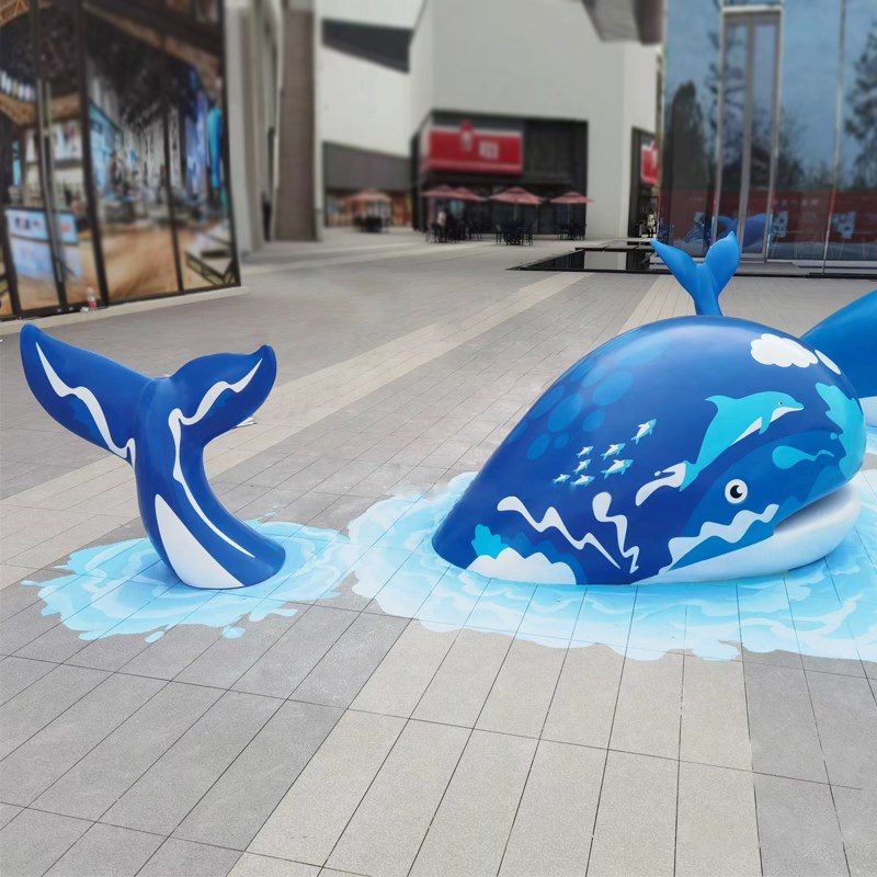 玻璃钢雕塑鲸鱼海豚鱼动物模型商场美陈户外大型摆件园林景观小品
