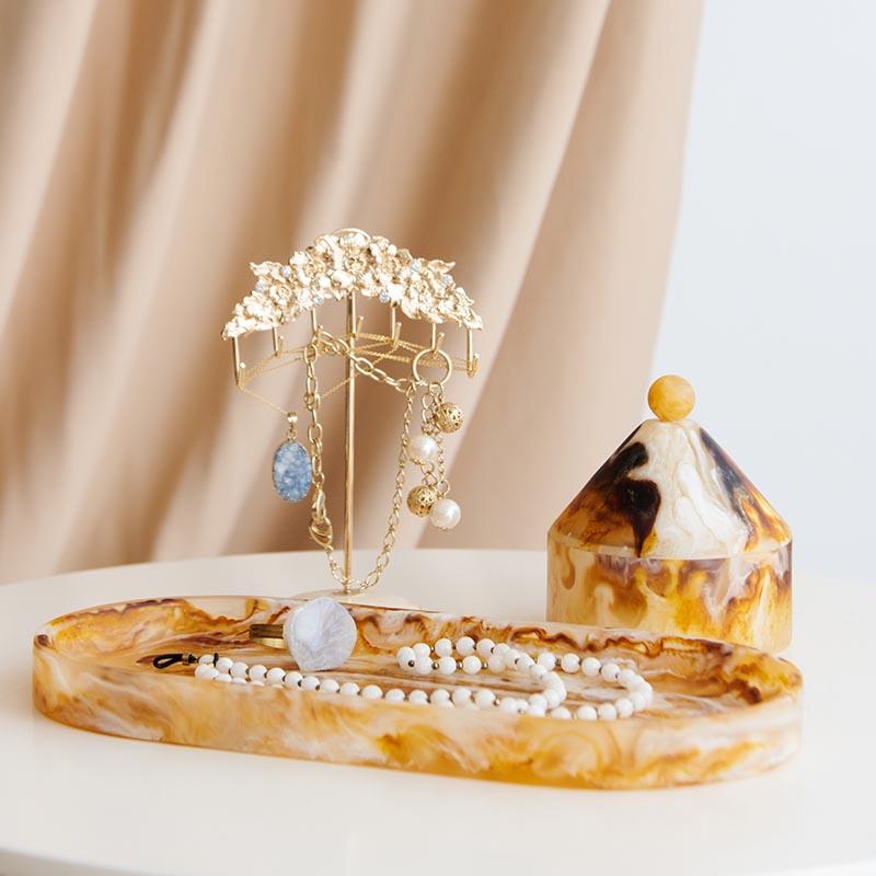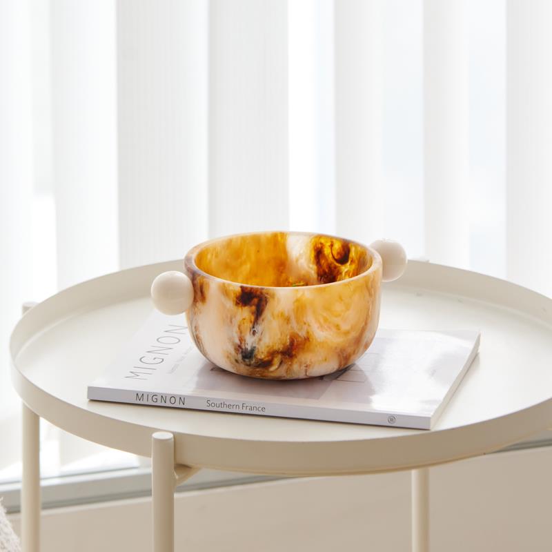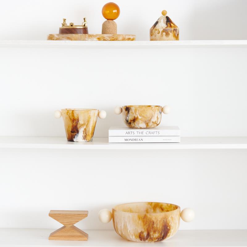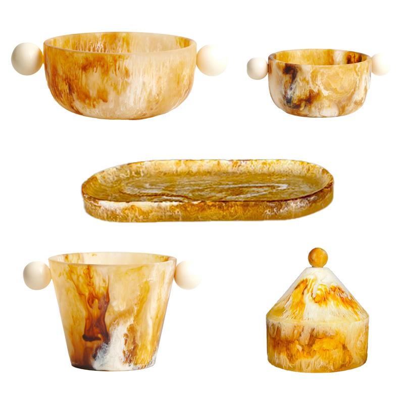 现代轻奢琥珀色球形手柄装饰碗长条形椭圆托盘金字塔首饰盒装饰品