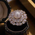 DIY珍珠配件S925纯银山茶花时尚戒指托指环调节戒托空托配饰品