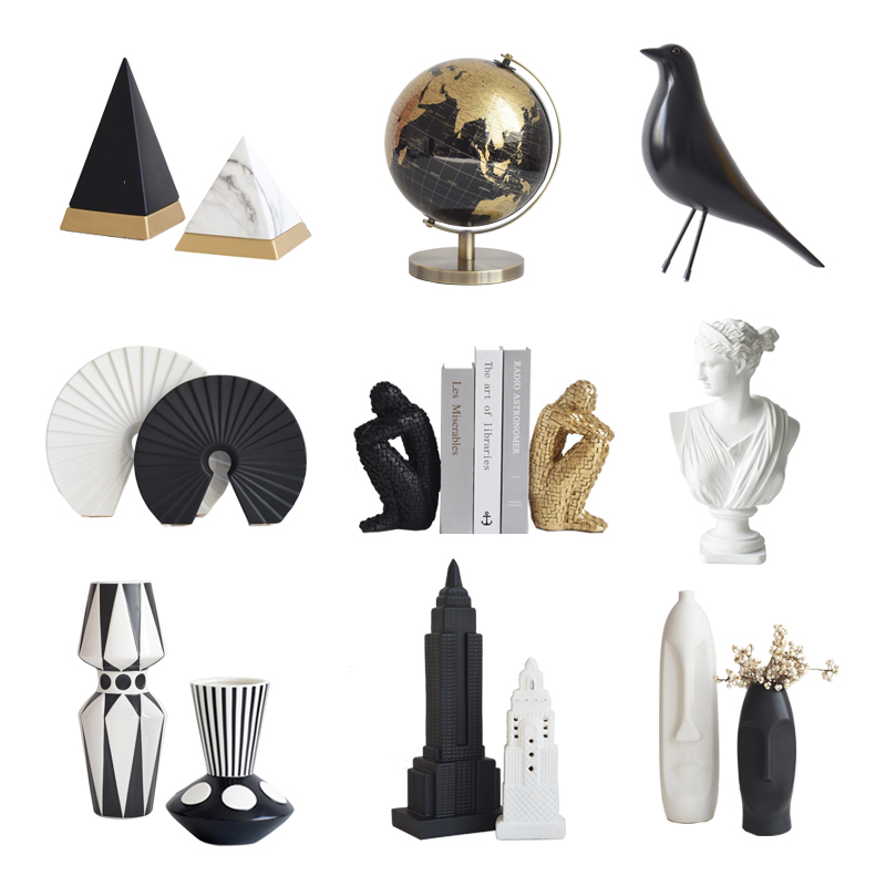 北欧现代创意几何样板间客厅玄关轻奢装饰品金字塔摆件办公室酒柜